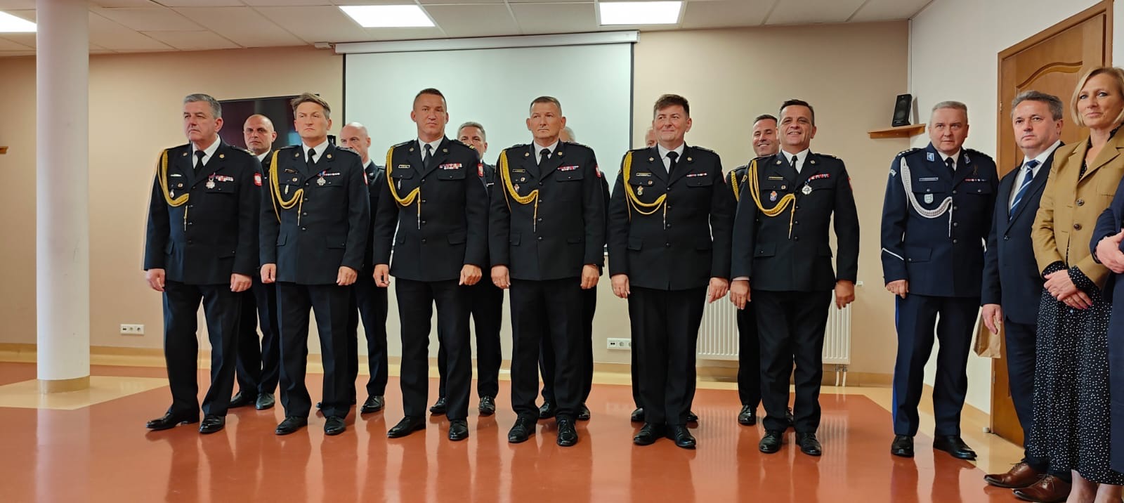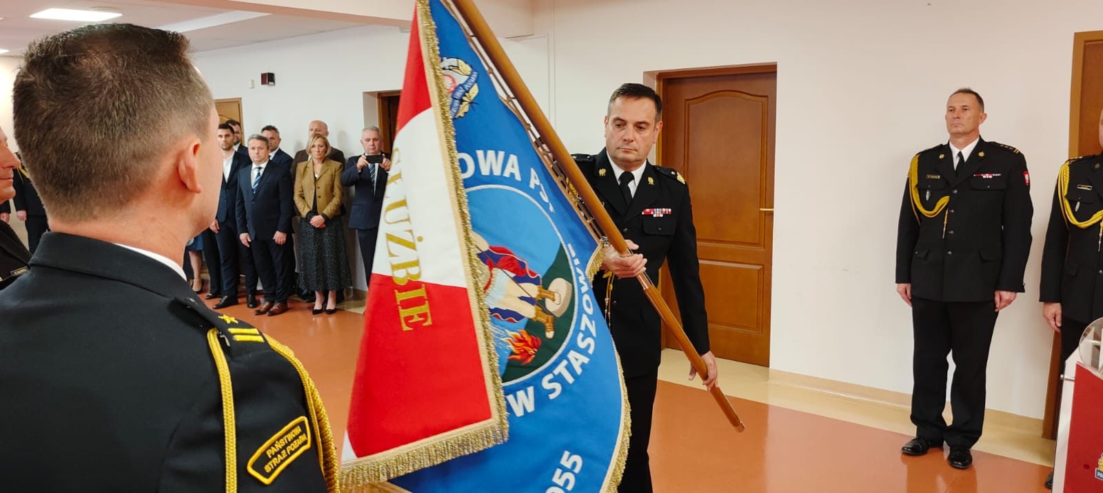 W dzisiejszej uroczystości wzięli również udział Zastępcy Świętokrzyskiego Komendanta Wojewódzkiego PSP st. bryg. Grzegorz Rajca oraz st. bryg. Marcin Charuba, a także komendanci powiatowi i miejski PSP z terenu woj. świętokrzyskiego.
