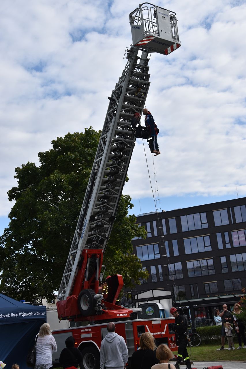 Duże zainteresowanie wśród publiczności wzbudził pokaz dynamiczny ratownictwa drogowego oraz ratownictwa wysokościowego przygotowany przez strażaków z kieleckich jednostek ratowniczo- gaśniczych.