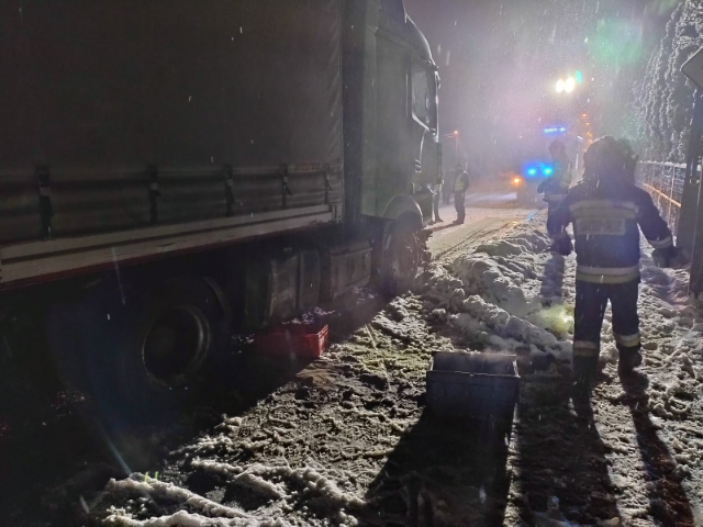 17 lutego 2021 roku tuż przed godziną 22 do Stanowiska Kierowania Komendanta Powiatowego PSP w Ostrowcu Świętokrzyskim wpłynęło zgłoszenie o wypadku z udziałem samochodu ciężarowego przy ul. Traugutta w Ostrowcu Świętokrzyskim. Do zdarzenia natychmiast zadysponowano Grupę Ratownictwa Chemiczno-Ekologicznego „Ostrowiec 2” - 3 samochody ratowniczo-gaśnicze i 10 strażaków.