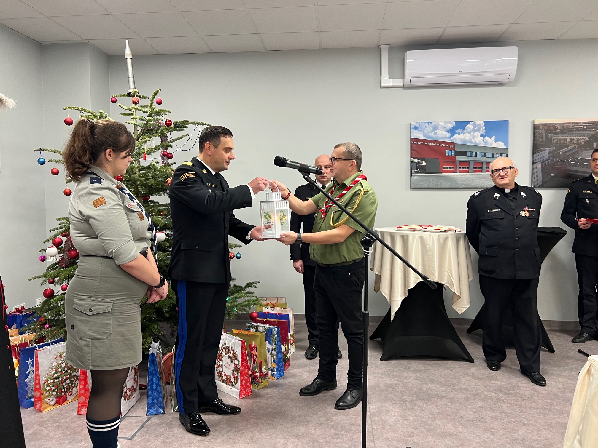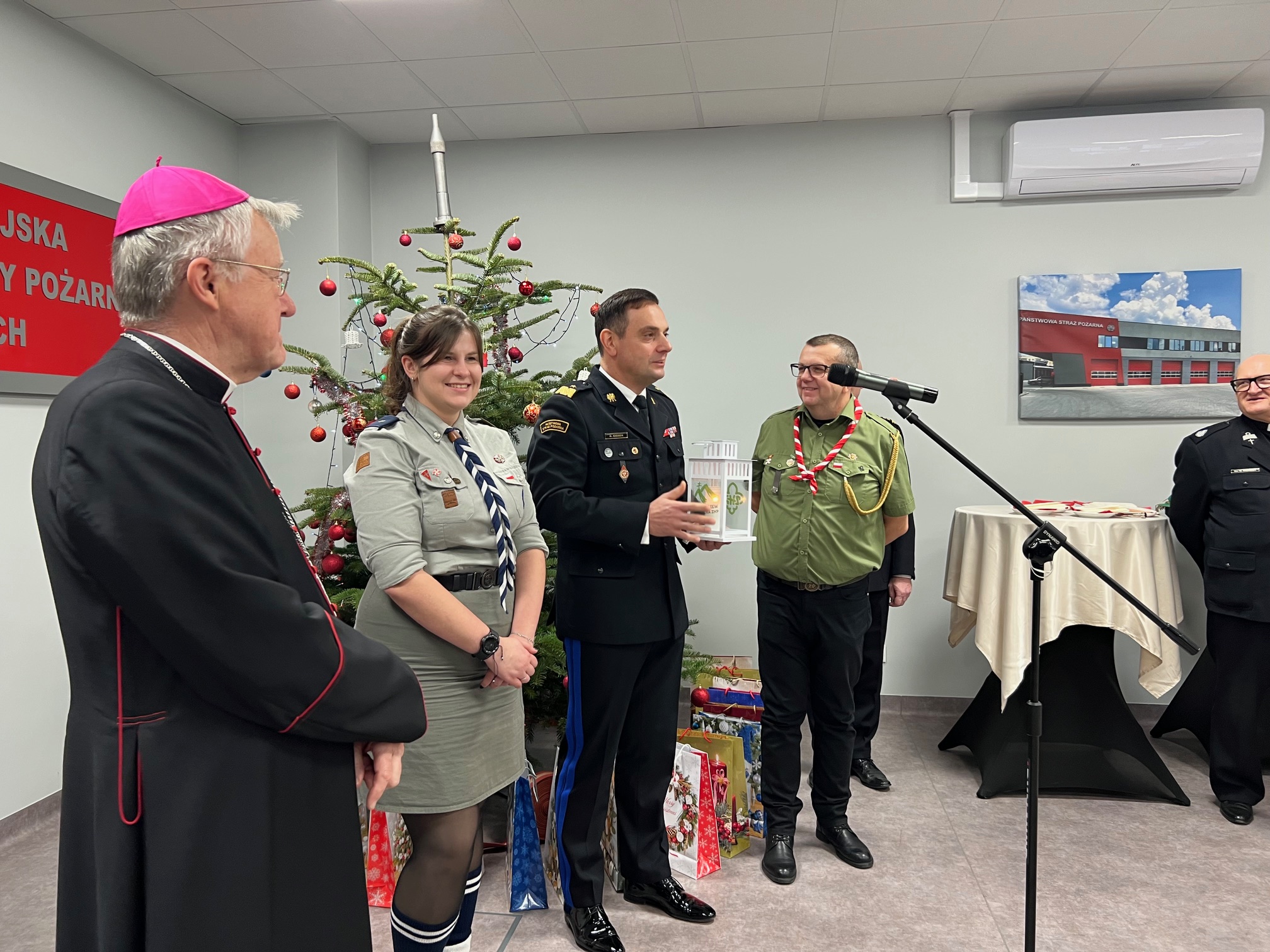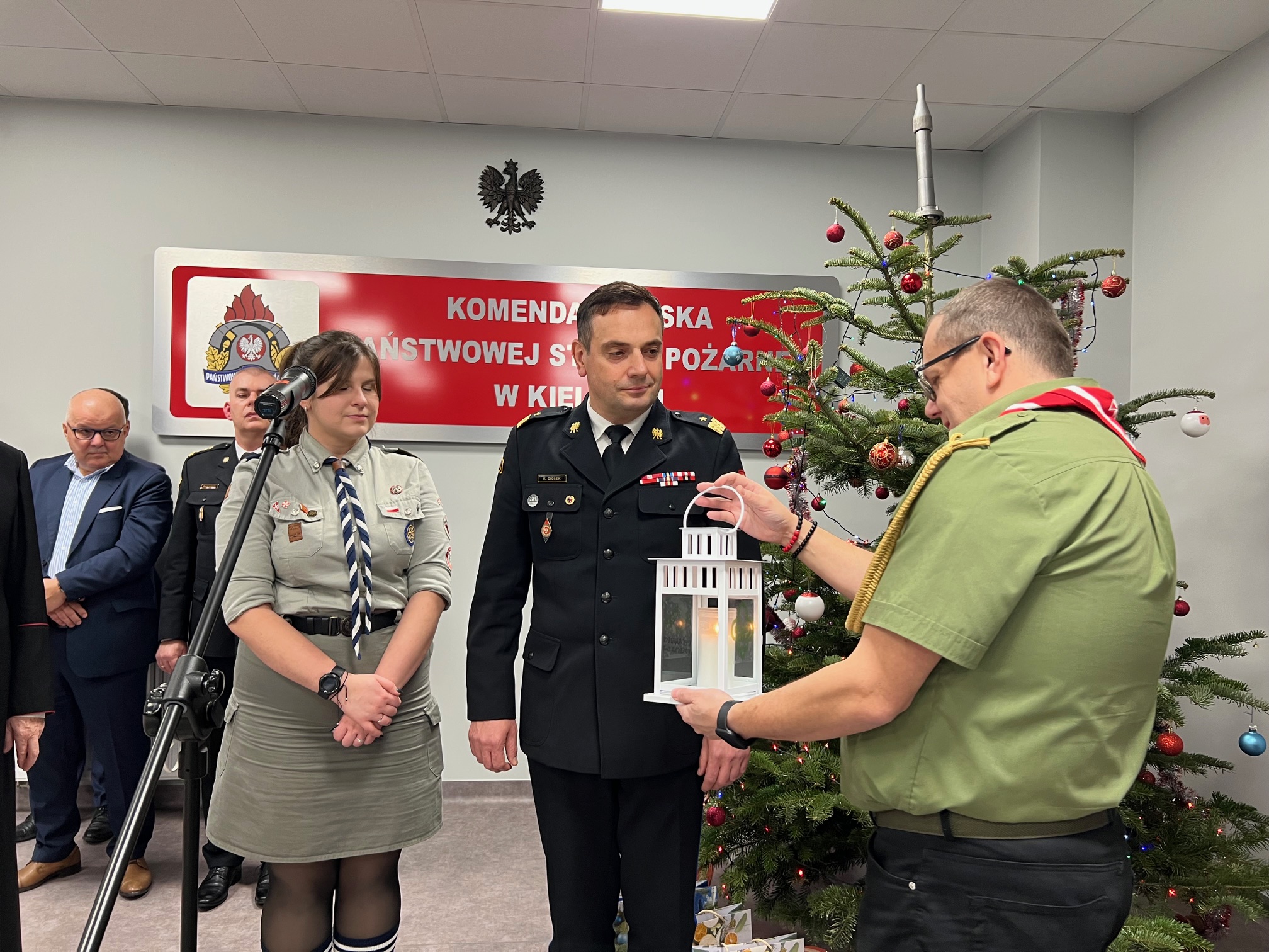 Zgodnie z tradycją harcerze Związku Harcerstwa Polskiego przekazali Betlejemskie Światło Pokoju na ręce Świętokrzyskiego Komendanta Wojewódzkiego Państwowej Straży Pożarnej nadbryg. Krzysztofa Cioska.