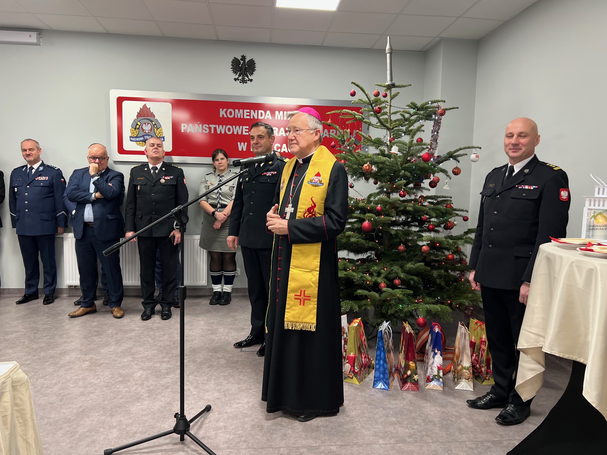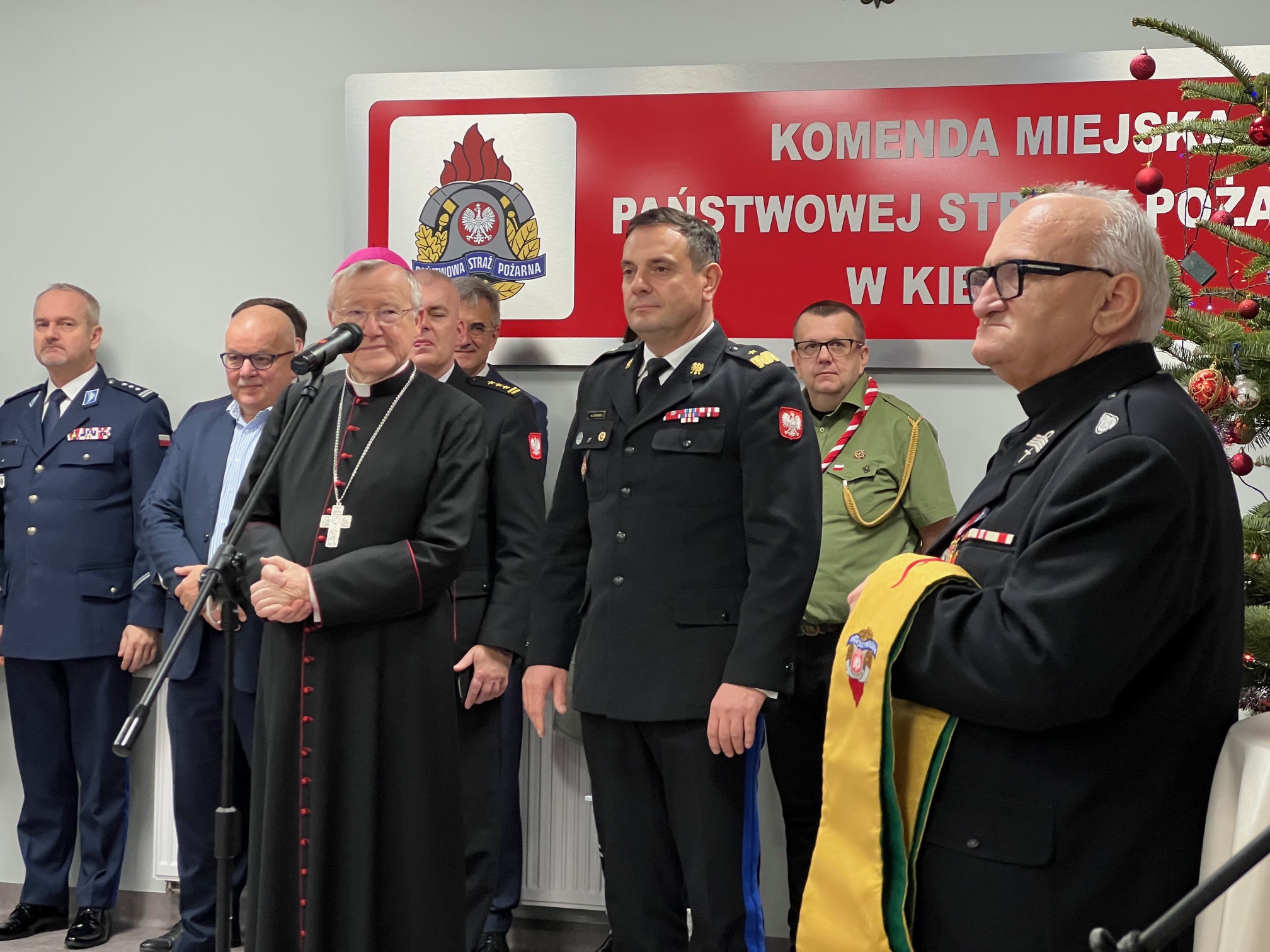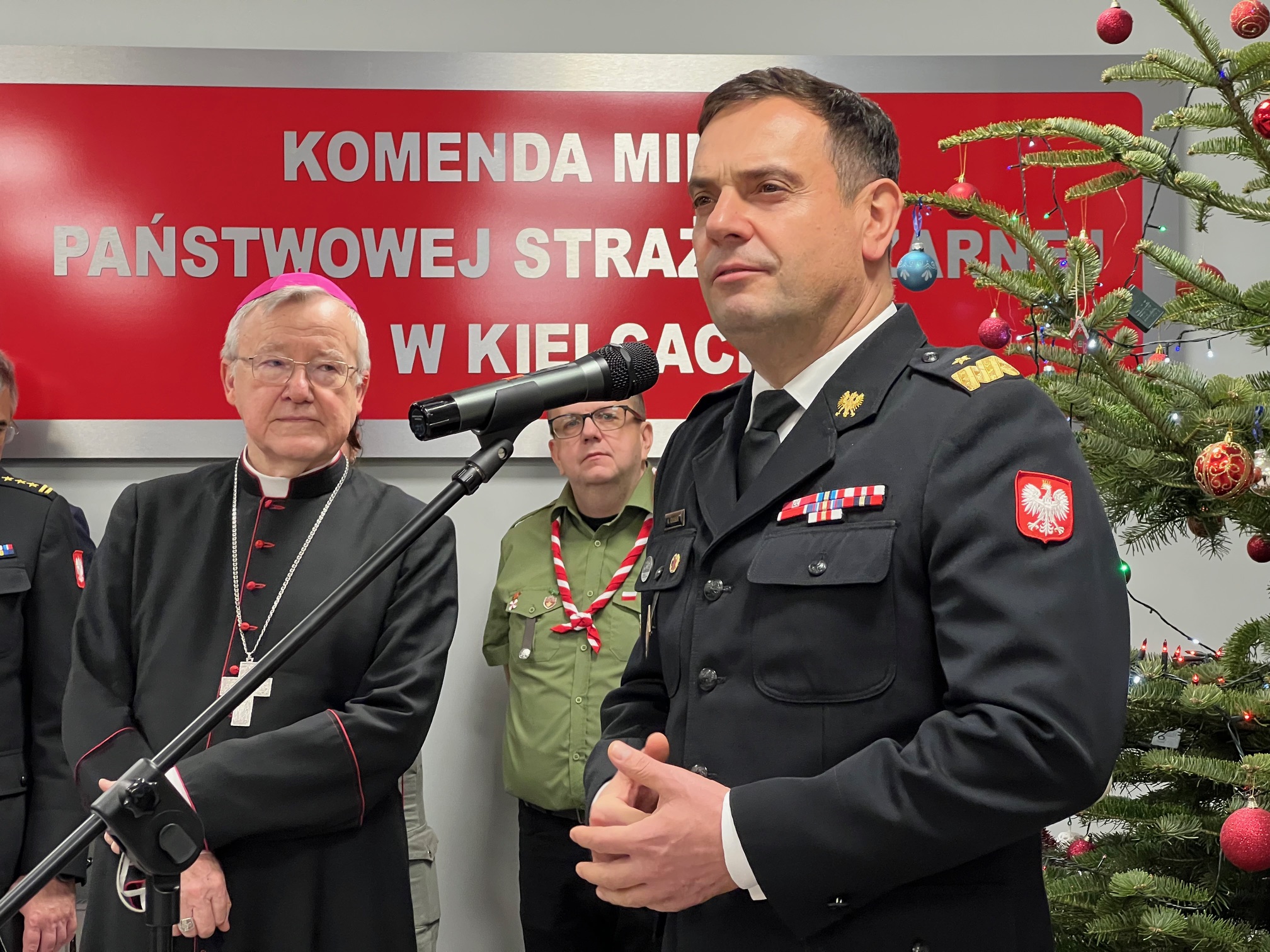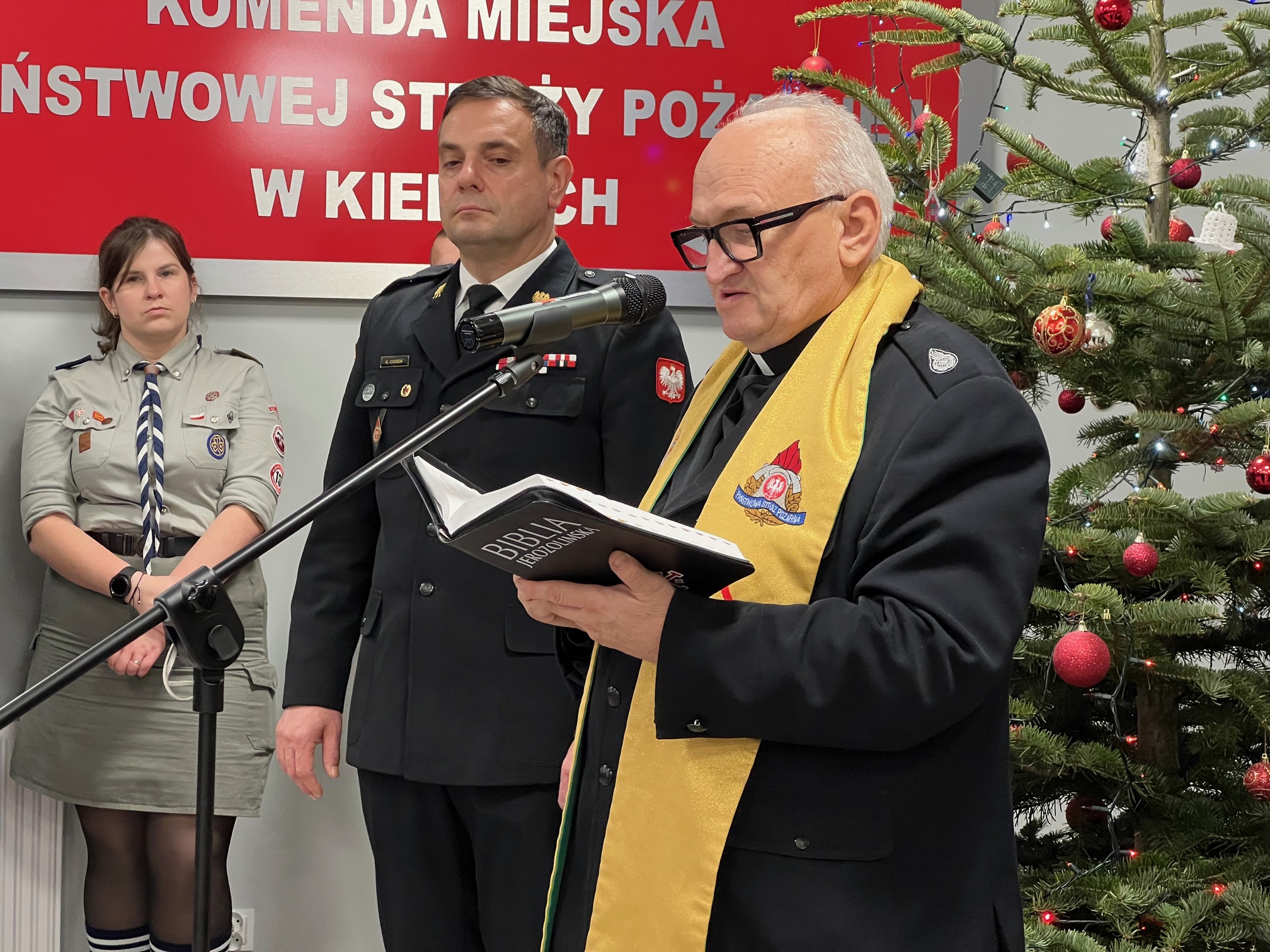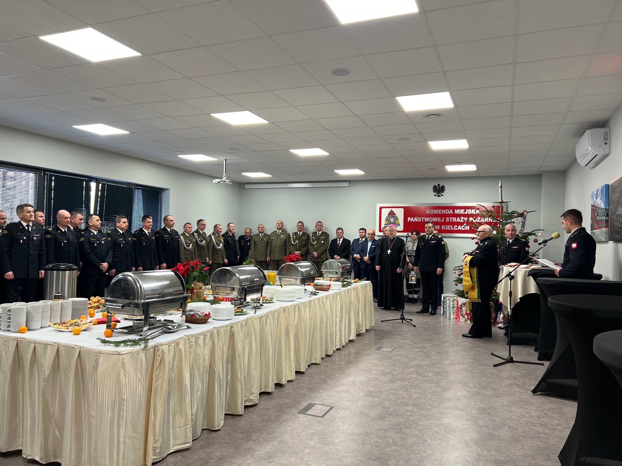 19 grudnia 2024 roku w sali narad Komendy Miejskiej Państwowej Straży Pożarnej w Kielcach odbyło się spotkanie opłatkowe. W wydarzeniu udział wzięli funkcjonariusze i pracownicy cywilni Komendy Wojewódzkiej Państwowej Straży Pożarnej w Kielcach oraz zaproszeni goście.