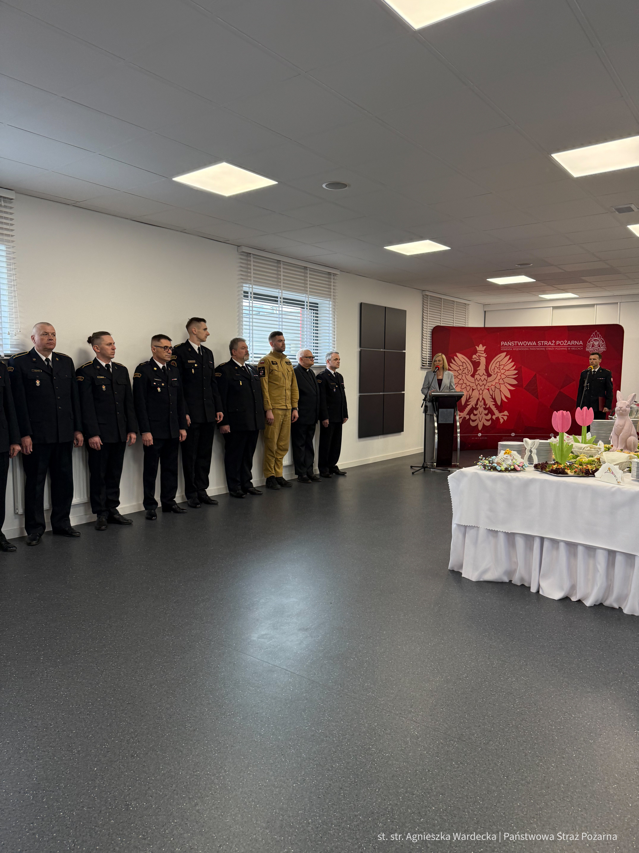 25 marca 2026 roku w Sali Konferencyjnej KBSS Komendy Wojewódzkiej PSP w Kielcach zgodnie z coroczną tradycją odbyło się spotkanie z okazji zbliżających się Świąt Wielkanocnych. W wydarzeniu udział wzięło kierownictwo tutejszej komendy, funkcjonariusze, pracownicy cywilni oraz przedstawiciele zaprzyjaźnionych służb i instytucji.