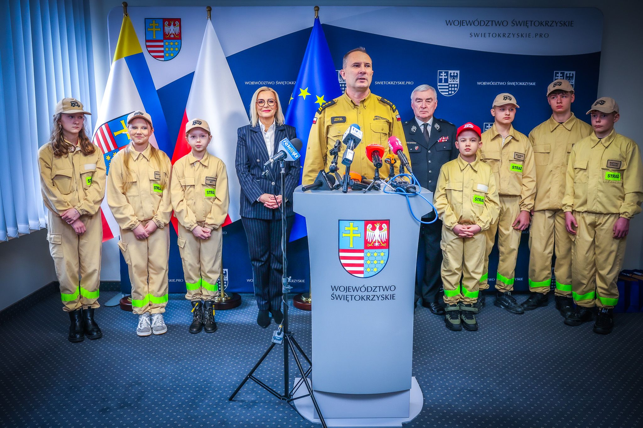 Samorząd Województwa Świętokrzyskiego podejmuje nową inicjatywę pn. „Strażacy Jutra", skierowaną do organizacji pozarządowych, która ma wesprzeć systemowo Młodzieżowe Drużyny Pożarnicze oraz Dziecięce Drużyny Pożarnicze. O szczegółach konkursu, w ramach którego NGO mogą otrzymać środki finansowe na szkolenia, sprzęt i doskonalenie młodych strażaków-ochotników, poinformowali marszałek województwa Renata Janik i przewodniczący Sejmiku Województwa a jednocześnie wiceprezes Zarządu Wojewódzkiego Związku Ochotniczych Straży Pożarnych RP Andrzej Bętkowski. Obecny był także st. bryg. Marcin Charuba, Komendant Wojewódzki Państwowej Straży Pożarnej w Kielcach oraz członkowie Młodzieżowej Drużyny Pożarniczej z OSP w Hucisku w gm. Strawczyn.