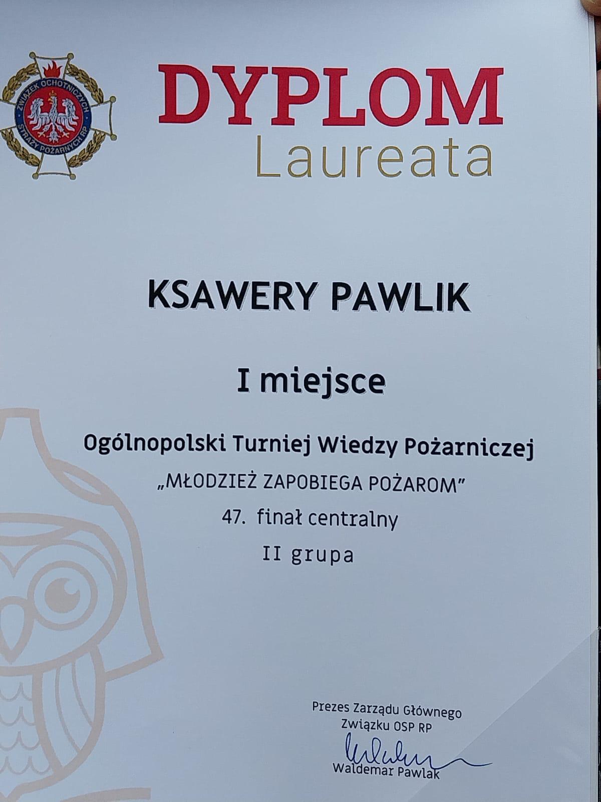 W dniach 6-8 czerwca 2025 r. w Ośrodku ZHP „Nadwarciański Gród” w Załęczu Wielkim (woj. łódzkie) odbył się 47. Finał Ogólnopolskiego Turniej Wiedzy Pożarniczej „Młodzież Zapobiega Pożarom”. W finale udział wzięły reprezentacje wszystkich 16 województw (po 2 osoby z każdej grupy wiekowej + zwycięzcy ubiegłorocznego finału). Ogromny sukces osiągnął reprezentant województwa świętokrzyskiego Ksawery Pawlik ze Szkoły Podstawowej w Nowej Słupi (pow. kielecki) wygrywając w swojej grupie wiekowej!