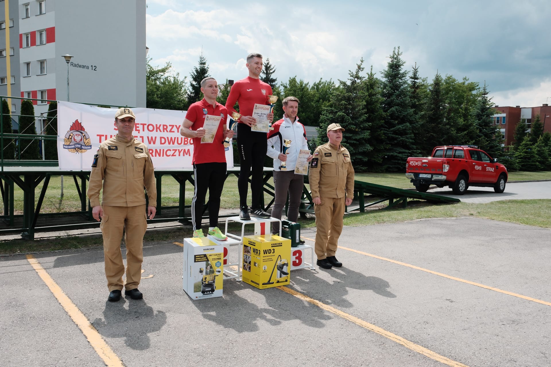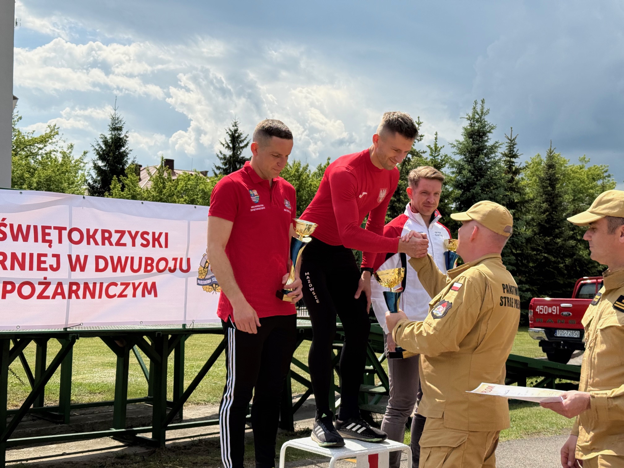 Puchary dla najlepszych zawodników w dwuboju pożarniczym oraz pozostałe nagrody rzeczowe i dyplomy ufundował Świętokrzyski Komendant Wojewódzki st. bryg. Marcin Charuba. Natomiast Zastępca Świętokrzyskiego Komendanta Wojewódzkiego PSP w Kielcach st. bryg. Marcin Machowski udekorował zawodników, podsumował turniej oraz pogratulował wszystkim uczestnikom sportowej rywalizacji i życzył kolejnych udanych startów. Kierownikiem zawodów był mł. bryg. Łukasz Zemła –Naczelnik Ośrodka Szkolenia KW PSP w Kielcach.