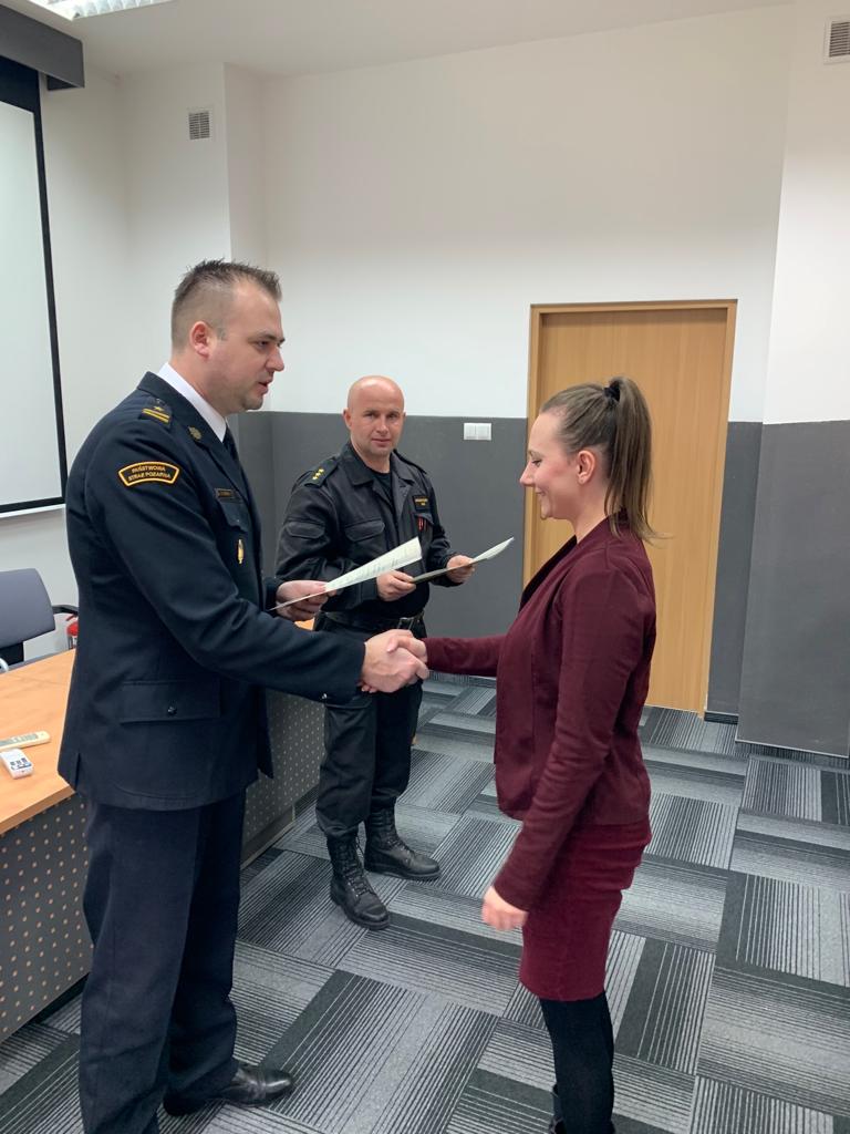 nadbryg. Krzysztofa Cioska oraz wręczenia zaświadczeń uczestnikom szkolenia dokonał Zastępca Naczelnika Ośrodka Szkolenia KW PSP w Kielcach mł. bryg. Łukasz Zemła. W szkoleniu brało udział oraz ukończyło go 12 osób.