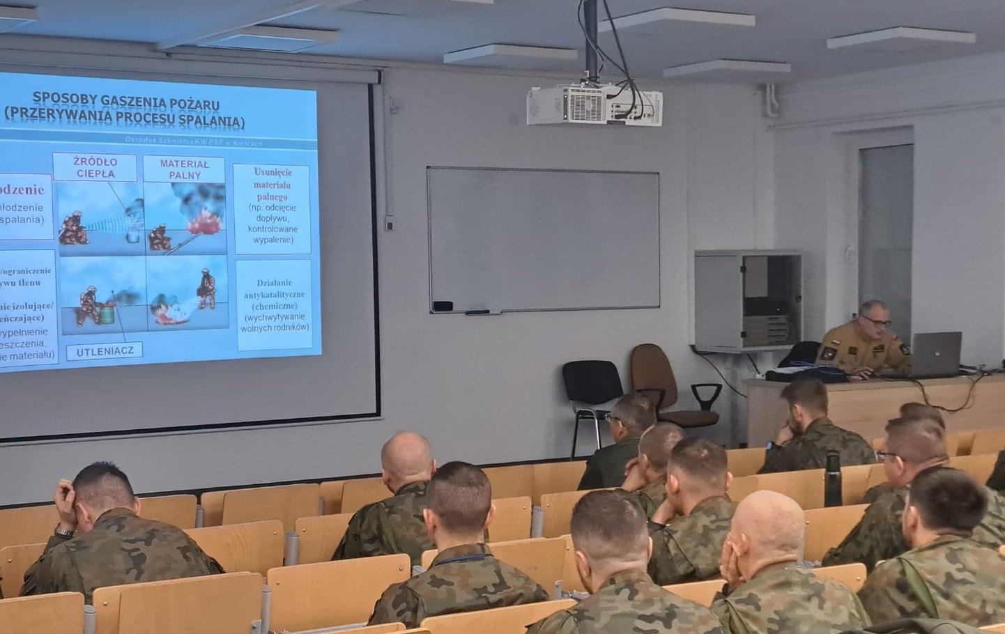 Żołnierze na początek wysłuchali wykładów na temat tego, czym jest fobia przed ogniem i jak sobie z nią radzić. Dowiedzieli się również o rodzajach poparzeń i zasadach udzielania pomocy osobom poparzonym.