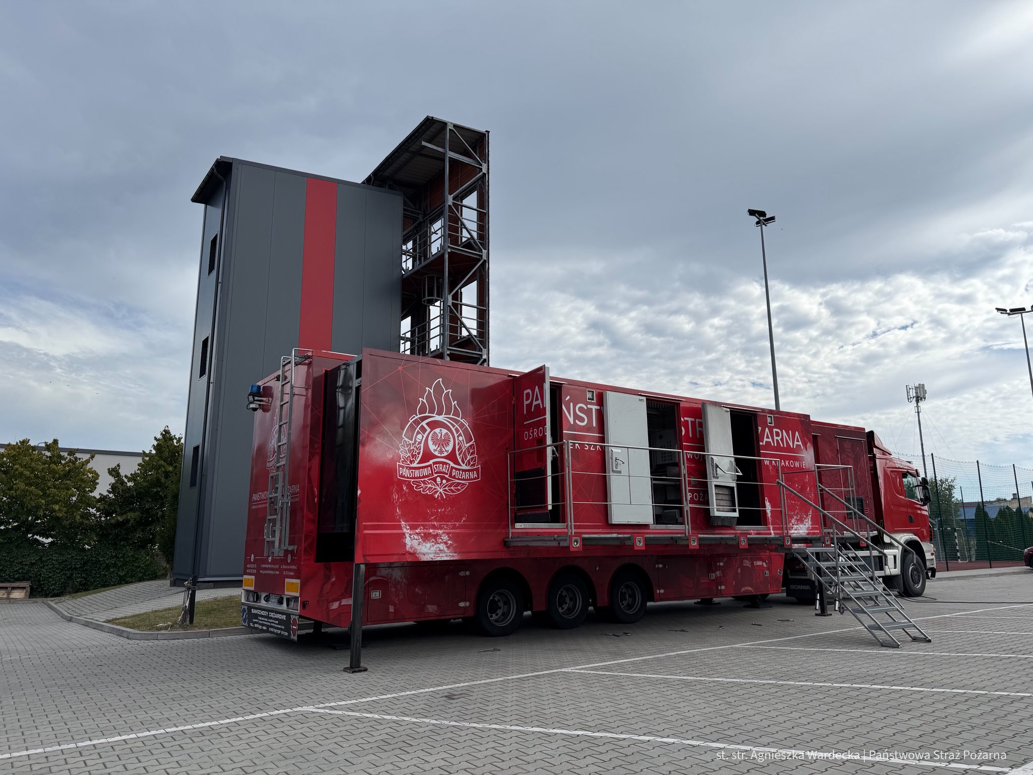 W dniach 27-28 sierpnia 2025 roku na placu Komendy Wojewódzkiej Państwowej Straży Pożarnej w Kielcach odbywały się testy w komorze dymowej ML 2000, wykonanej na bazie naczepy i ciągnika siodłowego, która przyjechała do nas z Komendy Wojewódzkiej Państwowej Straży Pożarnej w Krakowie.