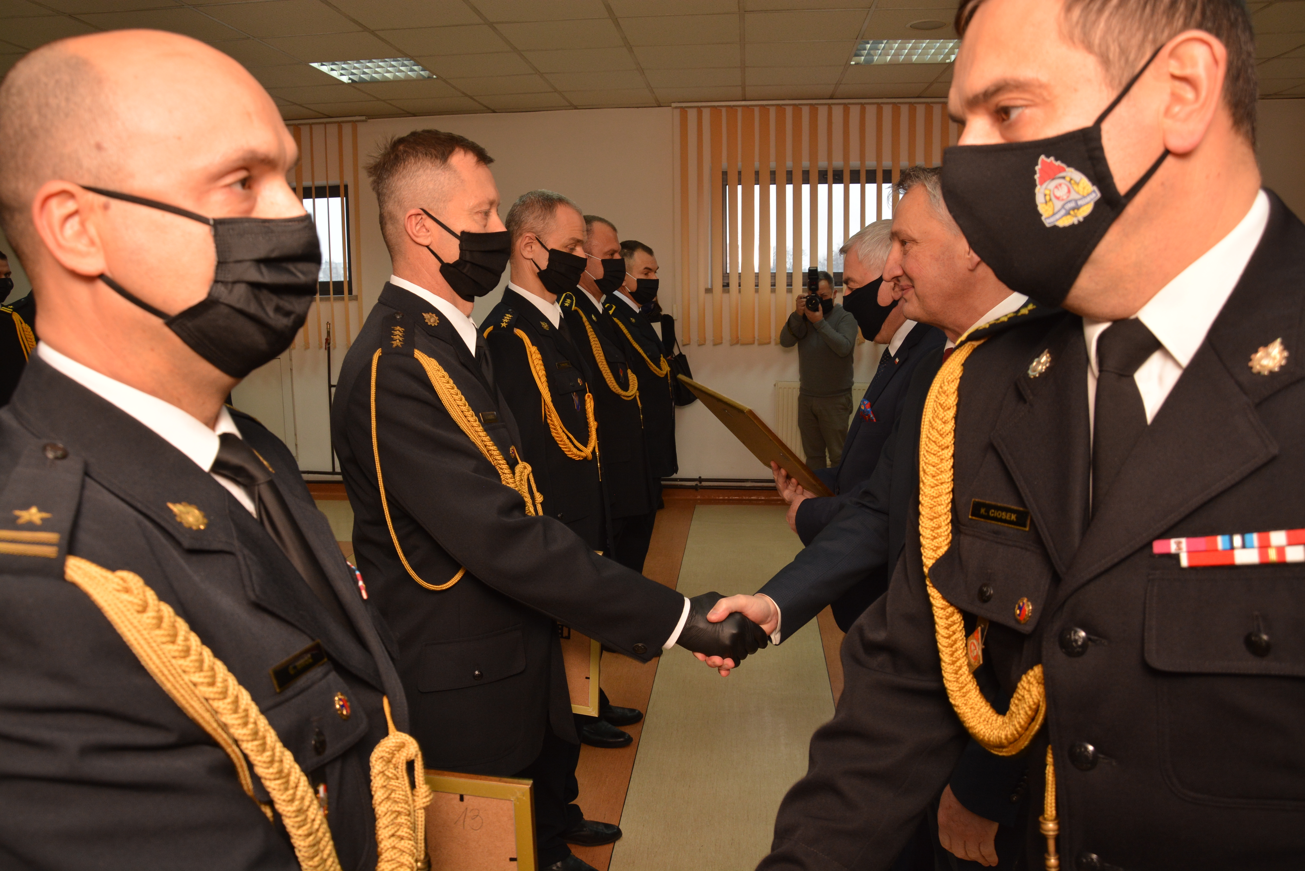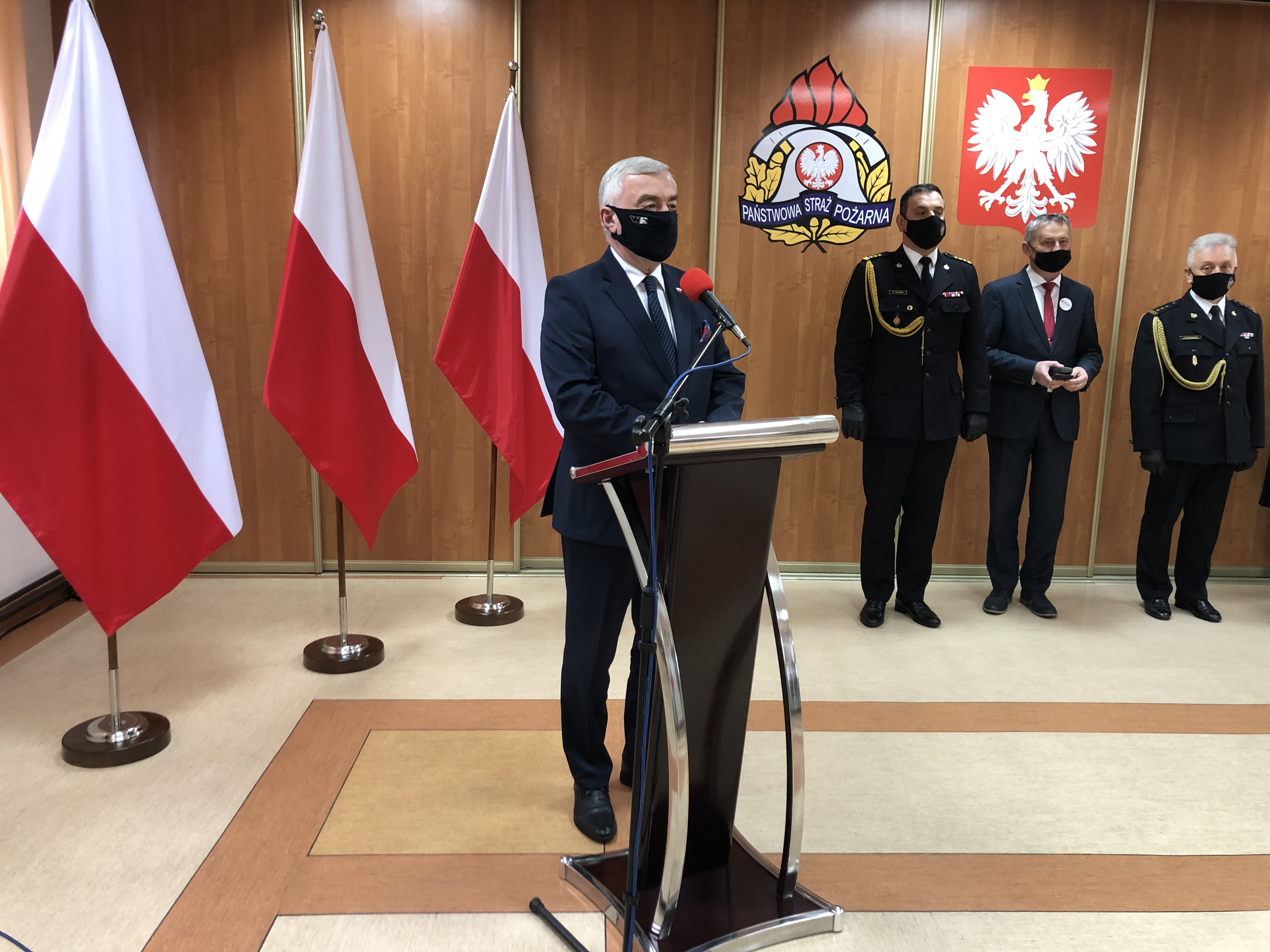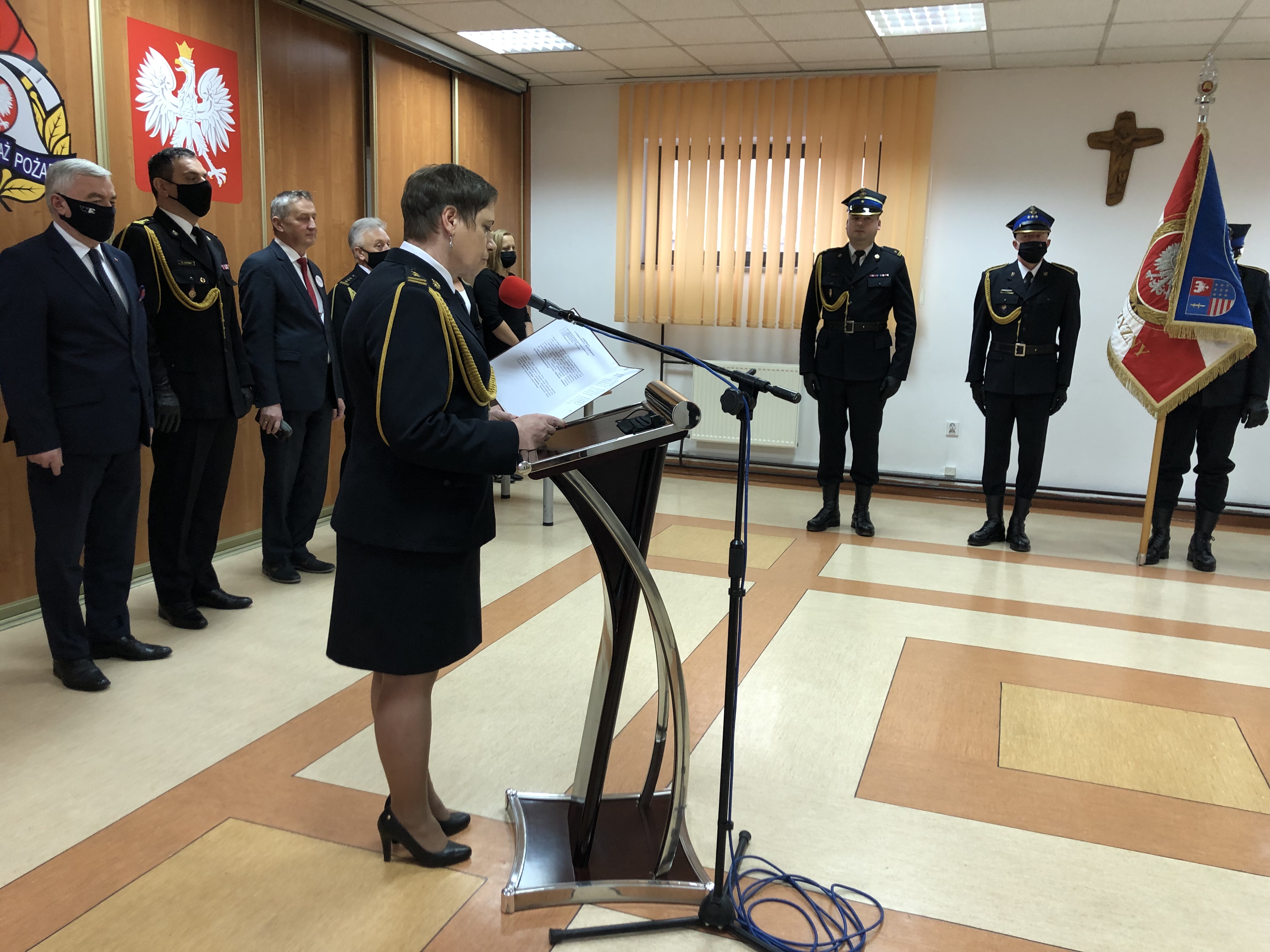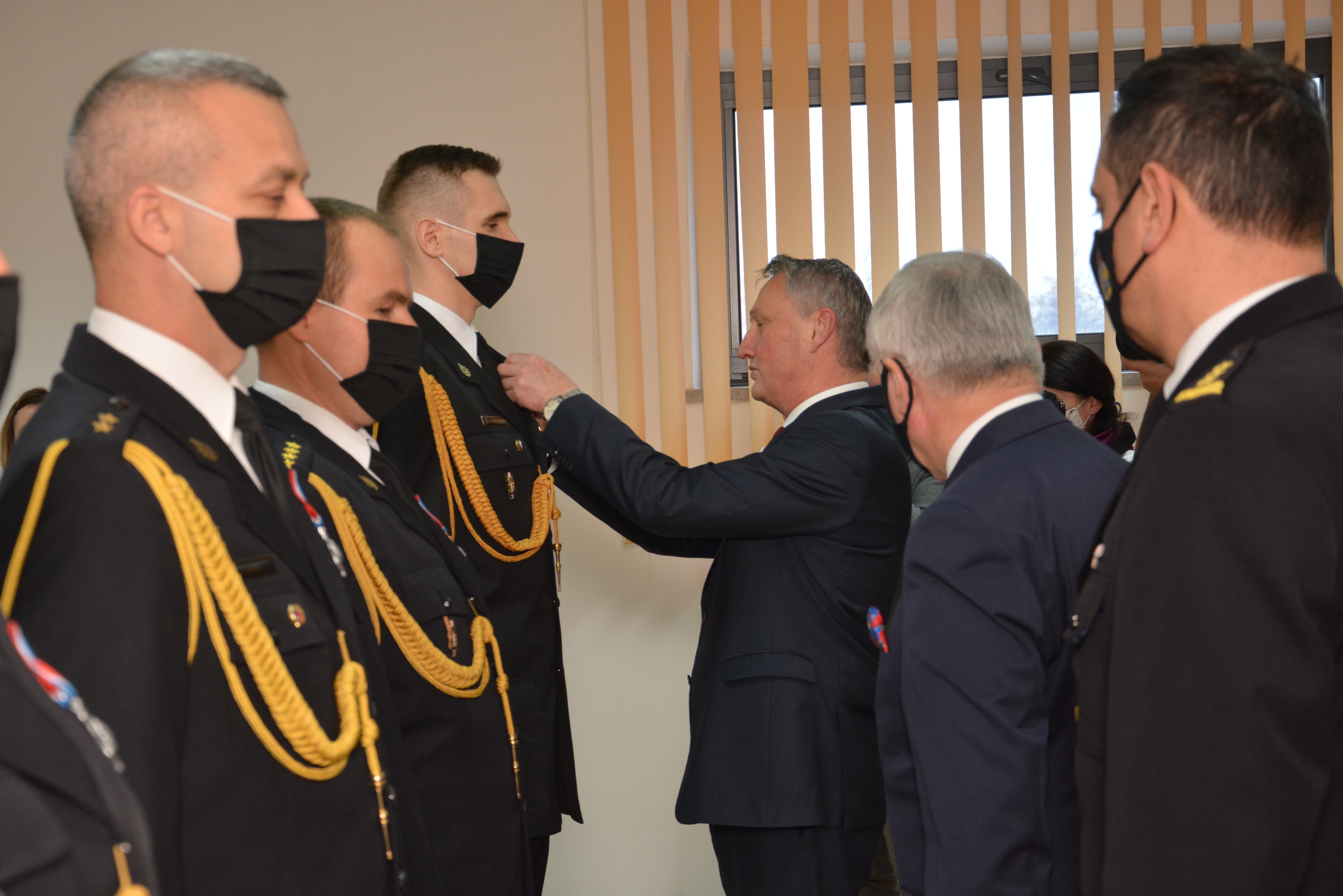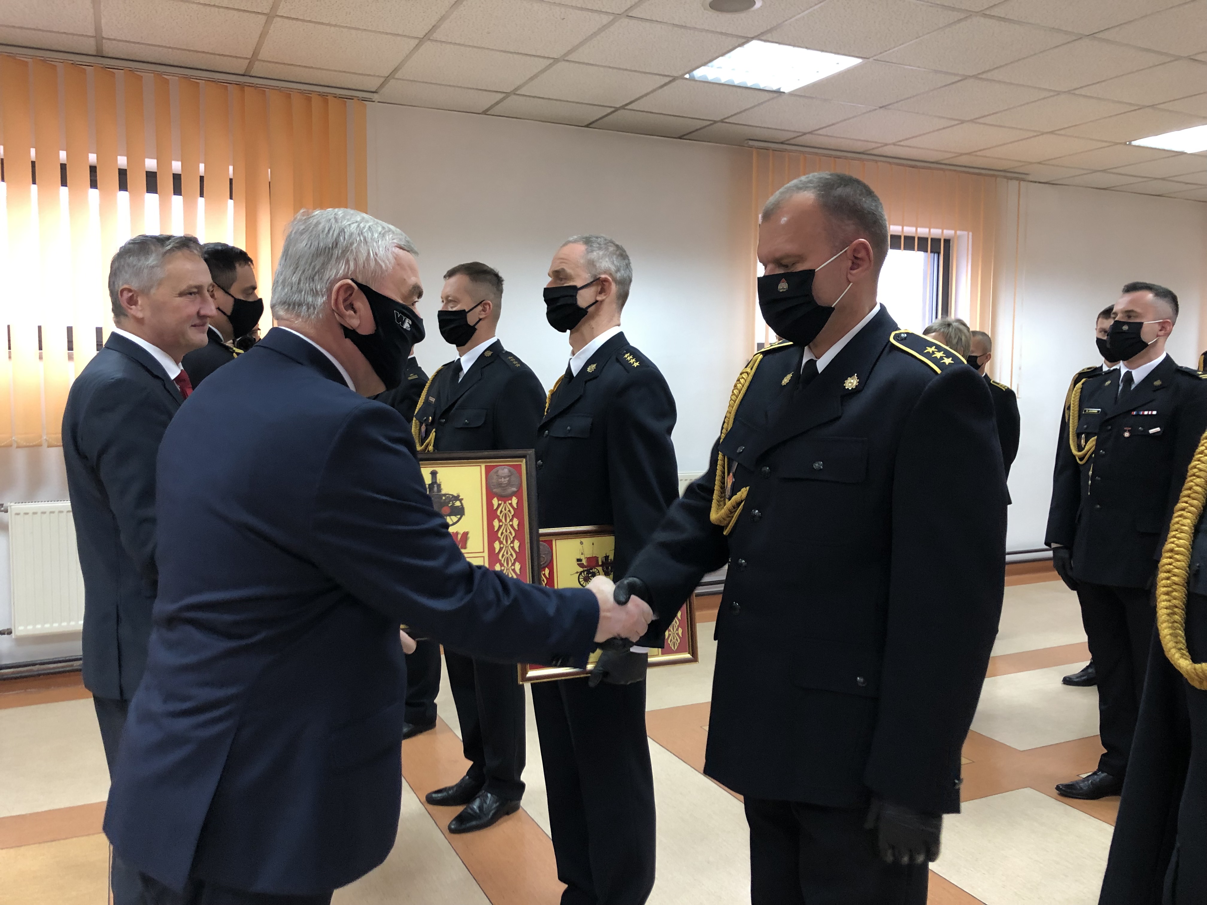 Wręczenia odznaczeń i awansów dokonali Wojewoda Świętokrzyski Zbigniew Koniusz, Marszałek Województwa Świętokrzyskiego Andrzej Bętkowski oraz Świętokrzyski Komendant Wojewódzki PSP st. bryg. Krzysztof Ciosek.