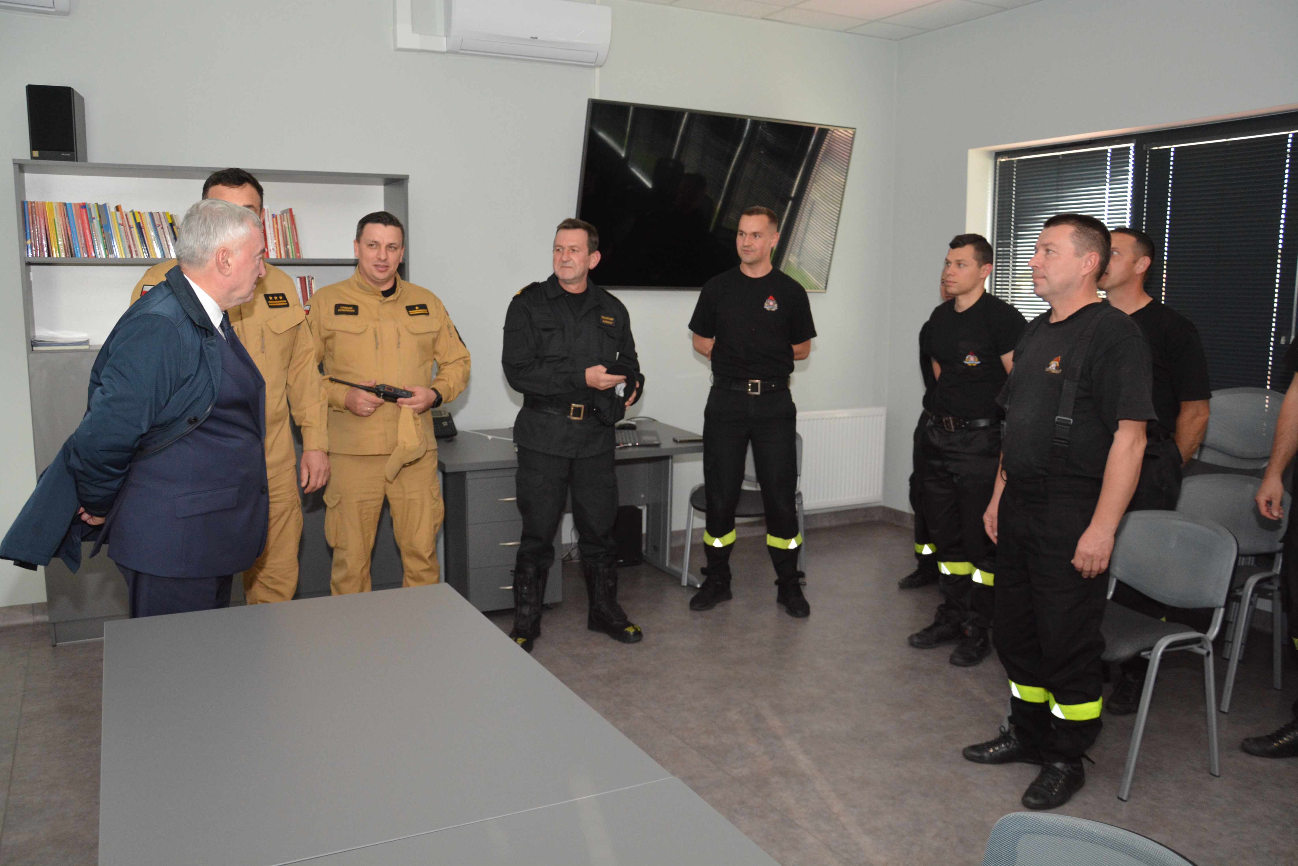 Wizyta marszałka województwa świętokrzyskiego u kieleckich strażaków