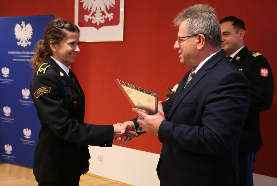Strażak musi być wysportowany. To warunek konieczny by skutecznie nieść pomoc potrzebującym. Świętokrzyscy strażacy raz po raz dają dowód swojej sprawności, osiągając bardzo dobre rezultaty w rywalizacji sportowej na arenach ogólnopolskich i międzynarodowych. Pierwszy sukces sportowy wywalczony został również w rywalizacji kobiet w strażackim mundurze. Mł. asp. Dominika Ostrowska z Komendy Powiatowej Państwowej Straży Pożarnej w Jędrzejowie zapisała się w historii świętokrzyskiego pożarnictwa wywalczając srebrny medal w Mistrzostwach Polski Strażaków w biegach po schodach. Ostatnie sukcesy sportowe świętokrzyskich strażaków zostały docenione przez wojewodę świętokrzyskiego Pana Józefa Bryka.