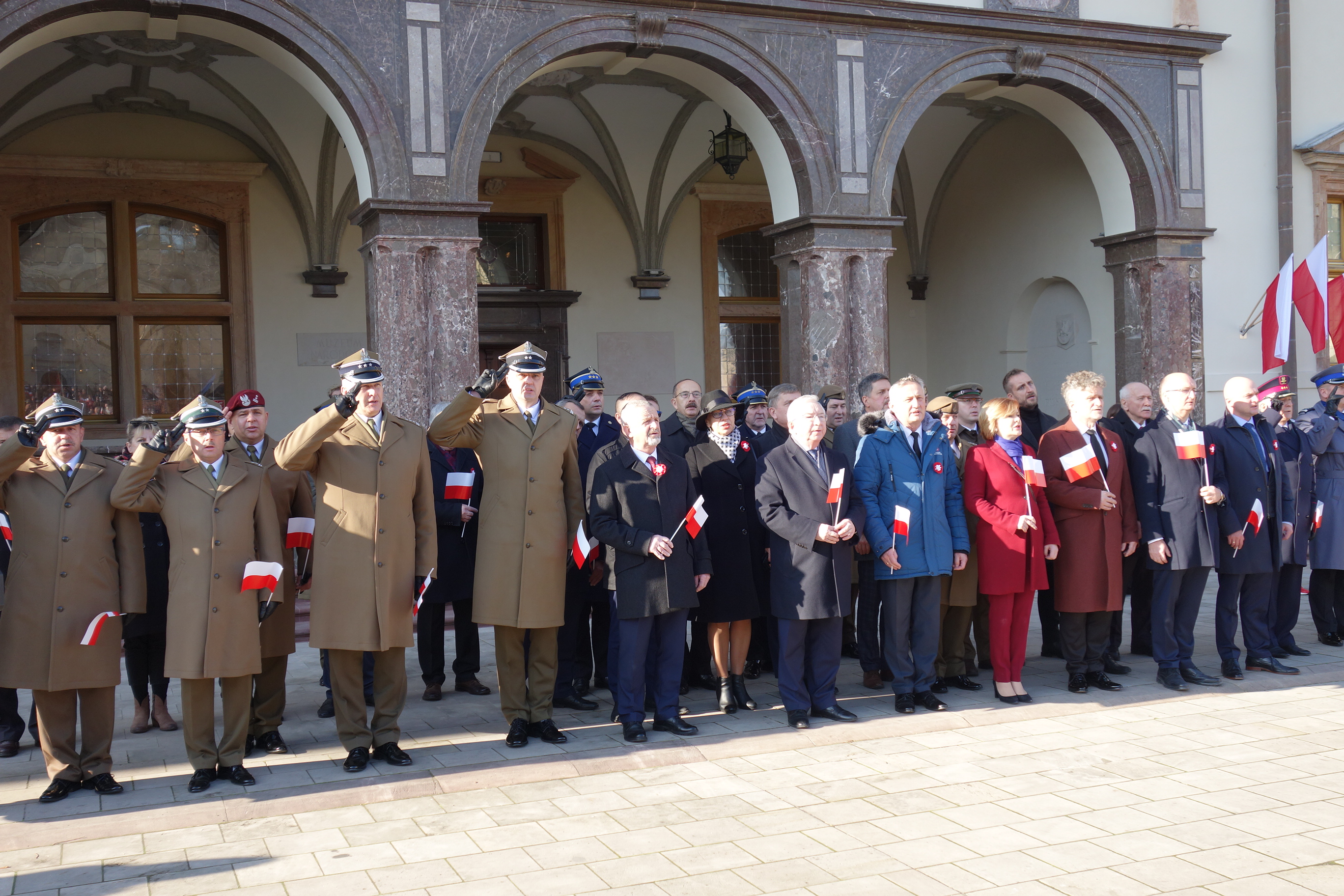 Podczas uroczystości odśpiewano hymn państwowy na placu przed Muzeum Narodowym oraz złożono wieniec od służb mundurowych MSWiA przed pomnikiem Marszałka Józefa Piłsudskiego na Placu Wolności.
