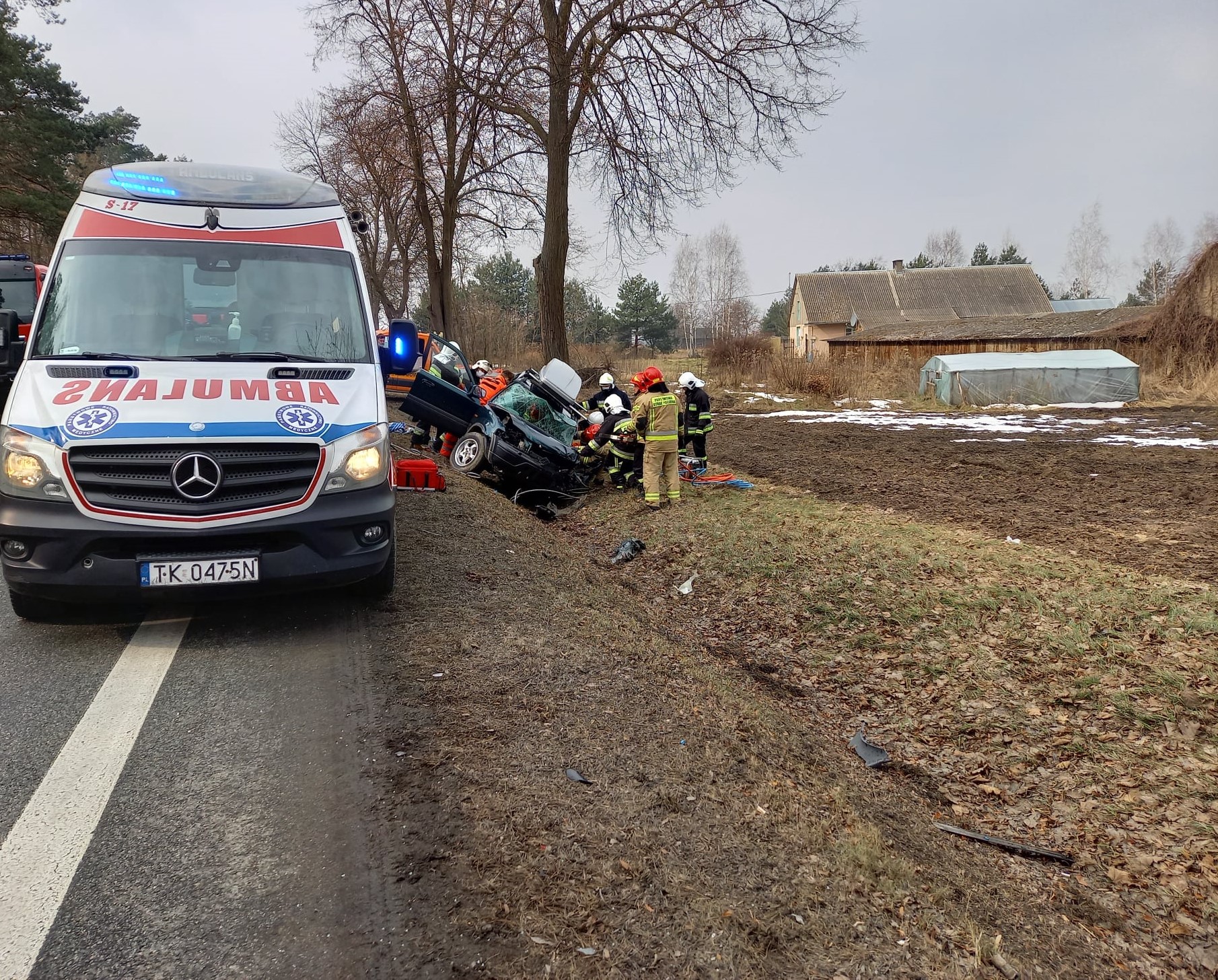 Wypadek drogowy w miejscowości Szymanówka, gm. Ożarów