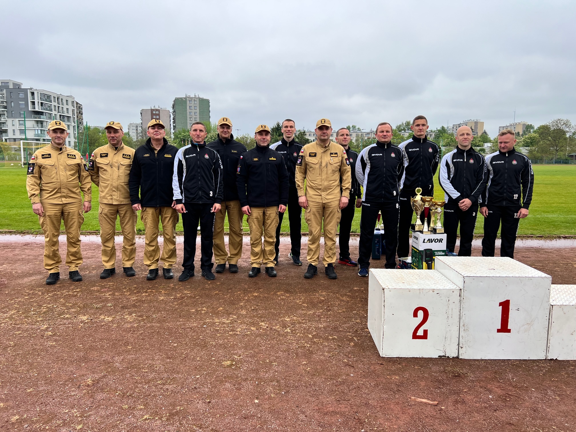 W klasyfikacji zespołowej pożarniczego toru przeszkód 100 m kolejność trzech pierwszych miejsc jest następująca: