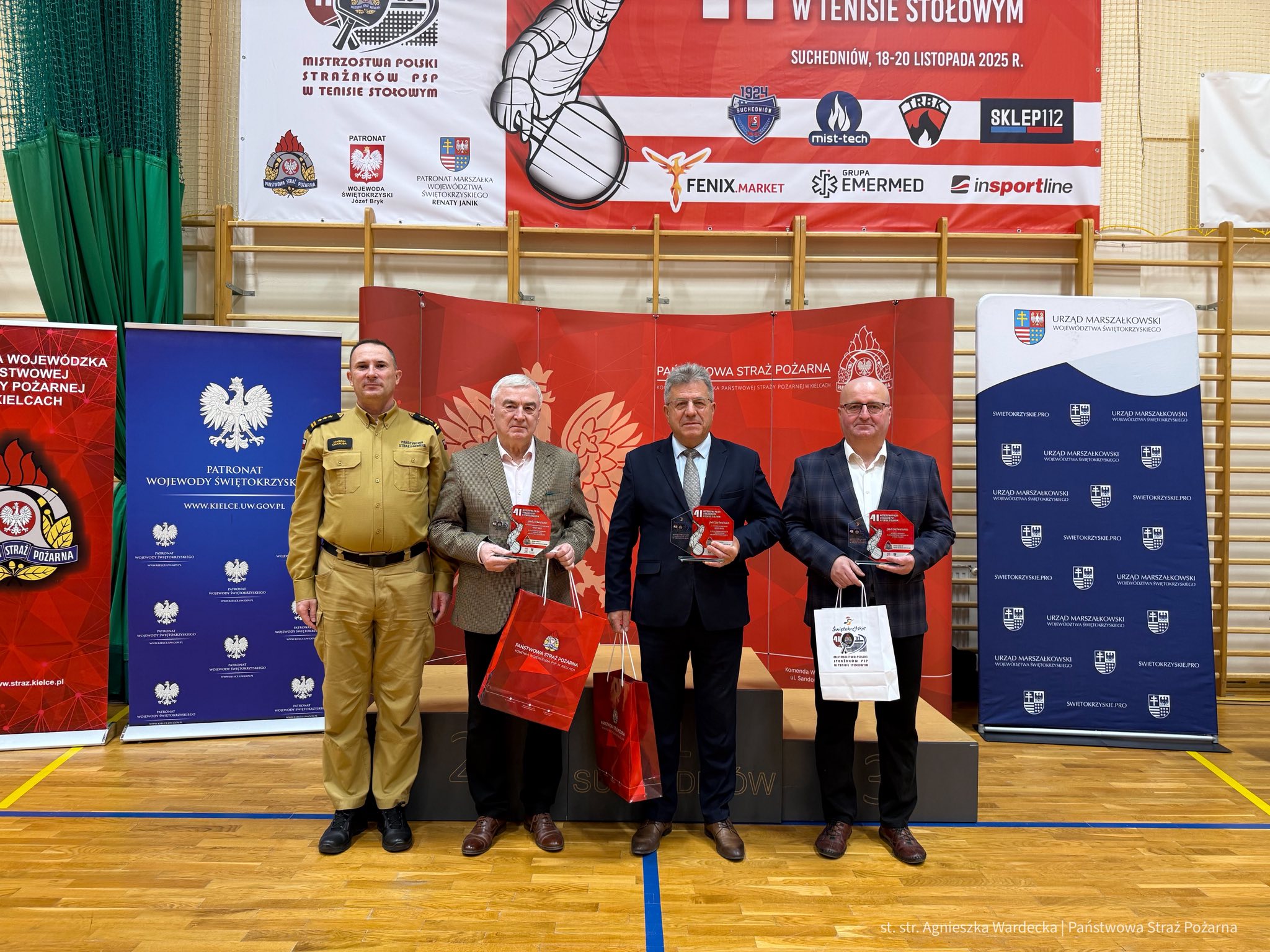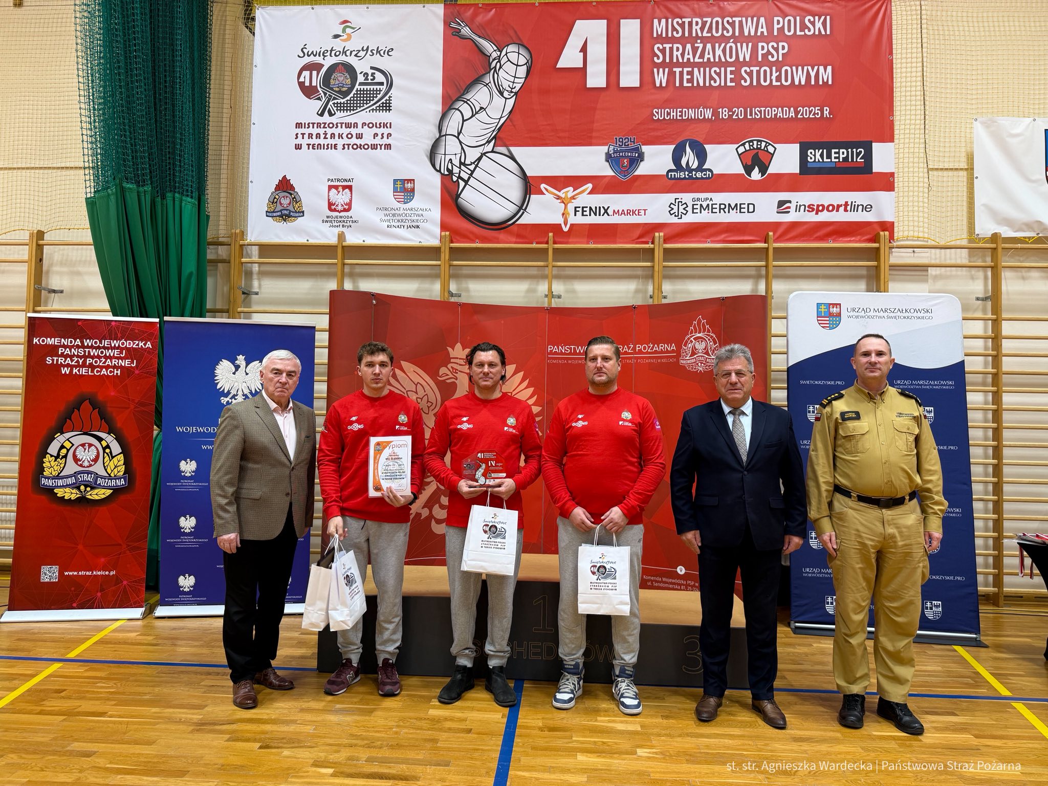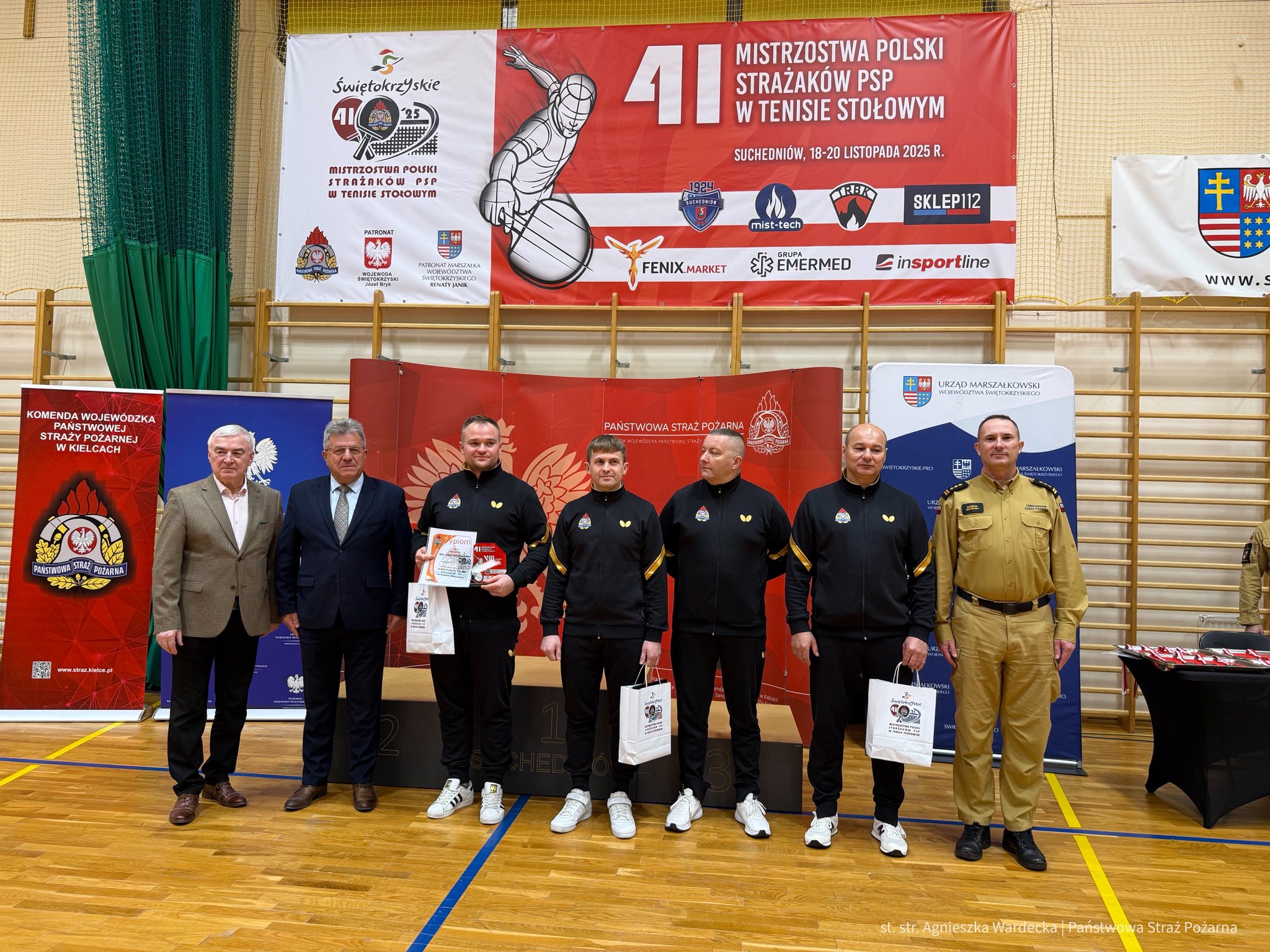 W dniach 18-20 listopada 2025 r. w Hali Sportowo-Rehabilitacyjnej w Suchedniowie odbyły się 41. Mistrzostwa Polski Strażaków PSP w Tenisie Stołowym. W rywalizacji udział wzięli reprezentanci komend wojewódzkich i szkół PSP z całej Polski.