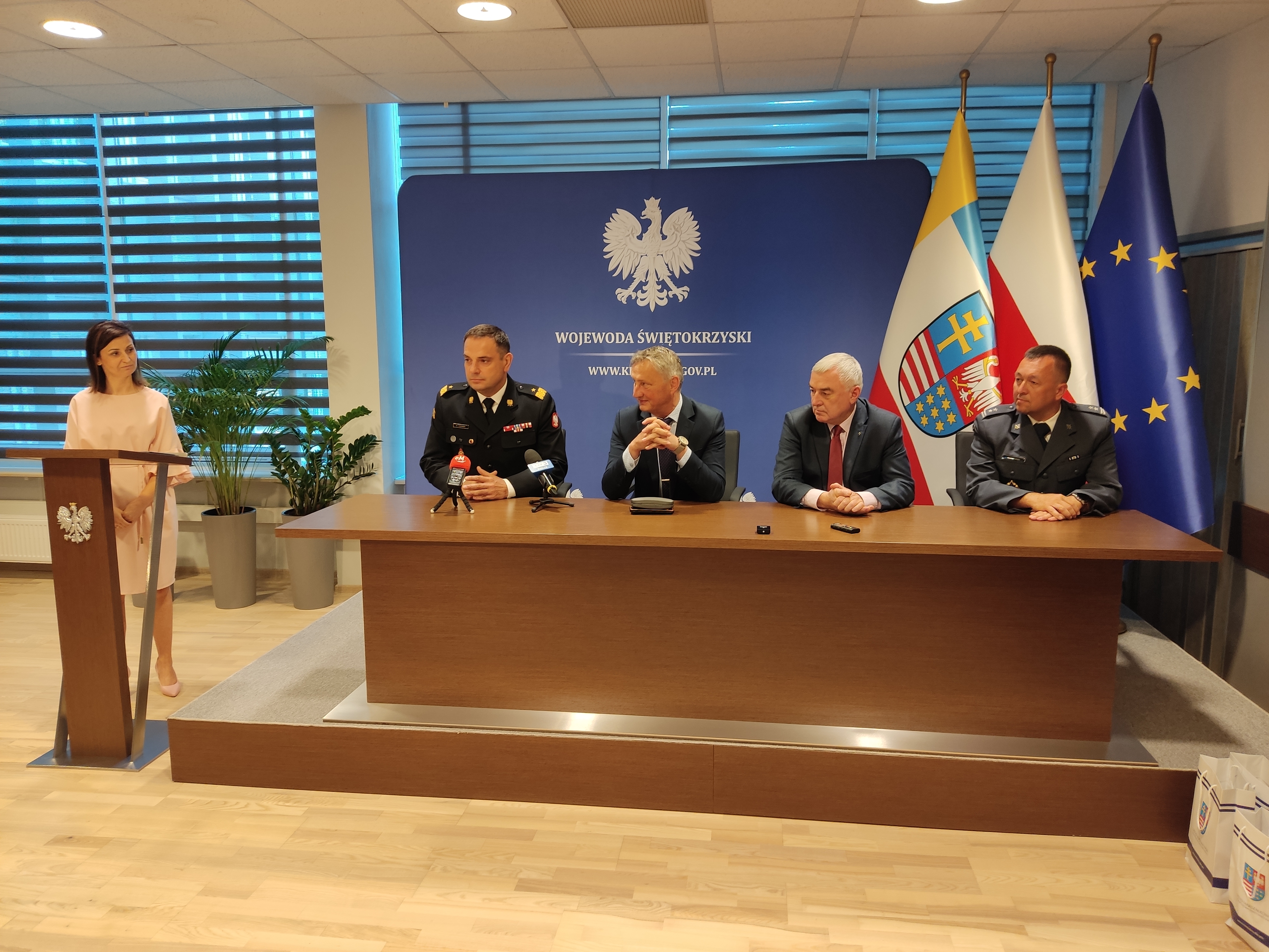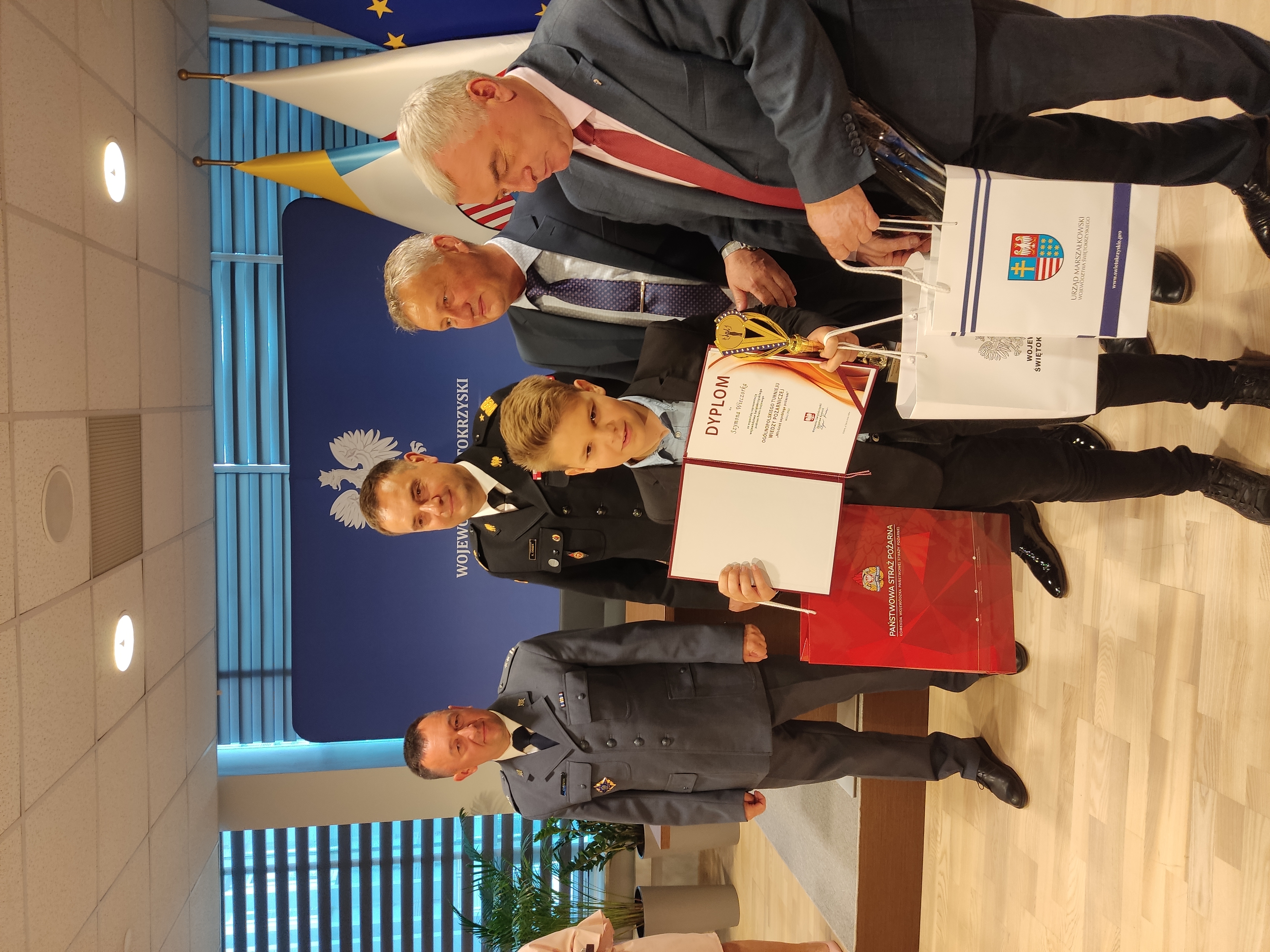 Organizatorem dzisiejszego spotkania był Wojewoda Świętokrzyski Zbigniew Koniusz. W uroczystości udział wzięli również: marszałek województwa świętokrzyskiego Andrzej Bętkowski, Świętokrzyski Komendant Wojewódzki PSP nadbryg. Krzysztof Ciosek oraz Dyrektor Aresztu Śledczego w Kielcach ppłk. Jacek Lagierski. Uroczystości tego typu odbywają się w Świętokrzyskim Urzędzie Wojewódzkim zawsze, gdy mieszkańcy regionu zabłysną na zawodach ogólnopolskich. Dziś wśród osób docenionych przez władze regionu znaleźli się m.in. reprezentanci województwa w Ogólnopolskim Turnieju Wiedzy Pożarniczej, Mistrz Polski strażaków Państwowej Straży Pożarnej w kolarstwie szosowym st. sekc. Tomasz Wilczak z KP PSP Starachowice oraz reprezentacja województwa świętokrzyskiego w sporcie pożarniczym, która jest aktualnym wicemistrzem Polski. Do wyróżnionych słowa uznania skierowali przedstawiciele władz województwa, doceniając ich prace, poświęcenie i zaangażowanie w rozwój. Komendant Wojewódzki PSP nadbryg. Krzysztof Ciosek pogratulował wszystkim nagrodzonym, a także podziękował rodzicom i opiekunom młodzieży biorącej udział w OTWP za wspieranie zainteresowań młodych ludzi problematyką bezpieczeństwa pożarowego. W imieniu osób otrzymujących nagrody głos zabrał kpt. Karol Błaszczyk – drużynowy wicemistrz Polski w sporcie pożarniczym, który podziękował za upominki oraz podkreślił, że medale i sukcesy naszych strażaków to efekt ciężkich i długotrwałych treningów również w czasie wolnym od służby.
