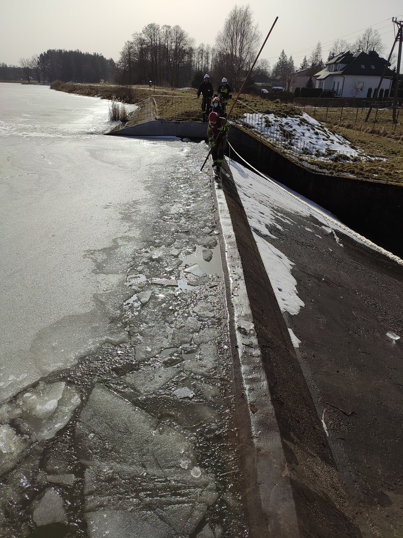 25.02.2021 r. około godziny 11:40 strażacy z JRG Skarżysko-Kamiena i OSP Suchedniów brali udział w usuwaniu zatoru lodowego jaki powstał w pobliżu zapory na zalewie w Suchedniowie. Powstały zator w dużym stopniu utrudniał odpływ wody ze zbiornika co spowodowało znaczny wzrost jego stanu. Działania ratowników polegały na rozbiciu powstałego zatoru przy pomocy toporów i ciężkich bosaków. Skruszenie lodu umożliwiło swobodny odpływ wody ze zbiornika. Dzięki tym działaniom poziom wody w zbiorniku już nie wzrasta. W związku ze znacznym wzrostem temperatur w ostatnich dniach strażacy z JRG Skarżysko-Kamienna na bieżąco prowadzą monitoring cieków i zbiorników wodnych na terenie powiatu.