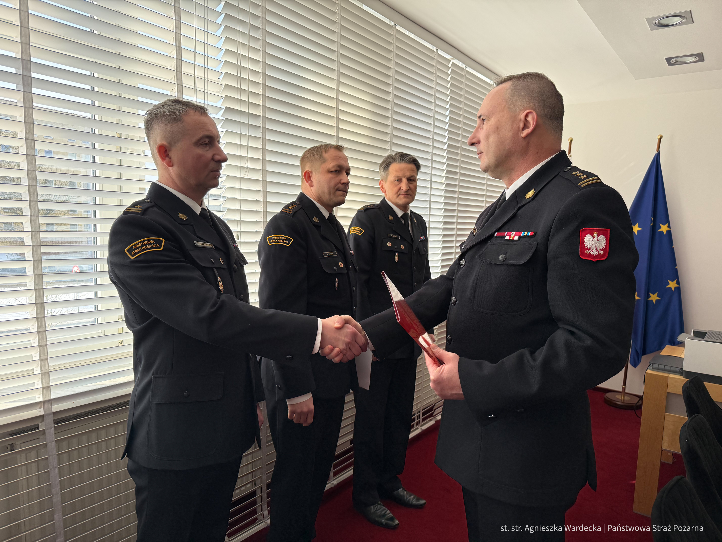 Wręczenie decyzji personalnych miało miejsce w Komendzie Wojewódzkiej Państwowej Straży Pożarnej w Kielcach w obecności Komendanta Miejskiego PSP w Kielcach st. bryg. Mariusza Góry.