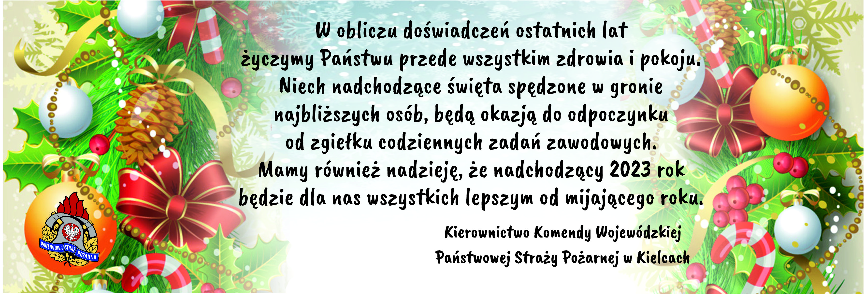 Życzenia świąteczno-noworoczne kierownictwa KW PSP Kielce 23.12.2022 Zdjęcia (1) Pokaż zdjęcie 1 z galerii.
