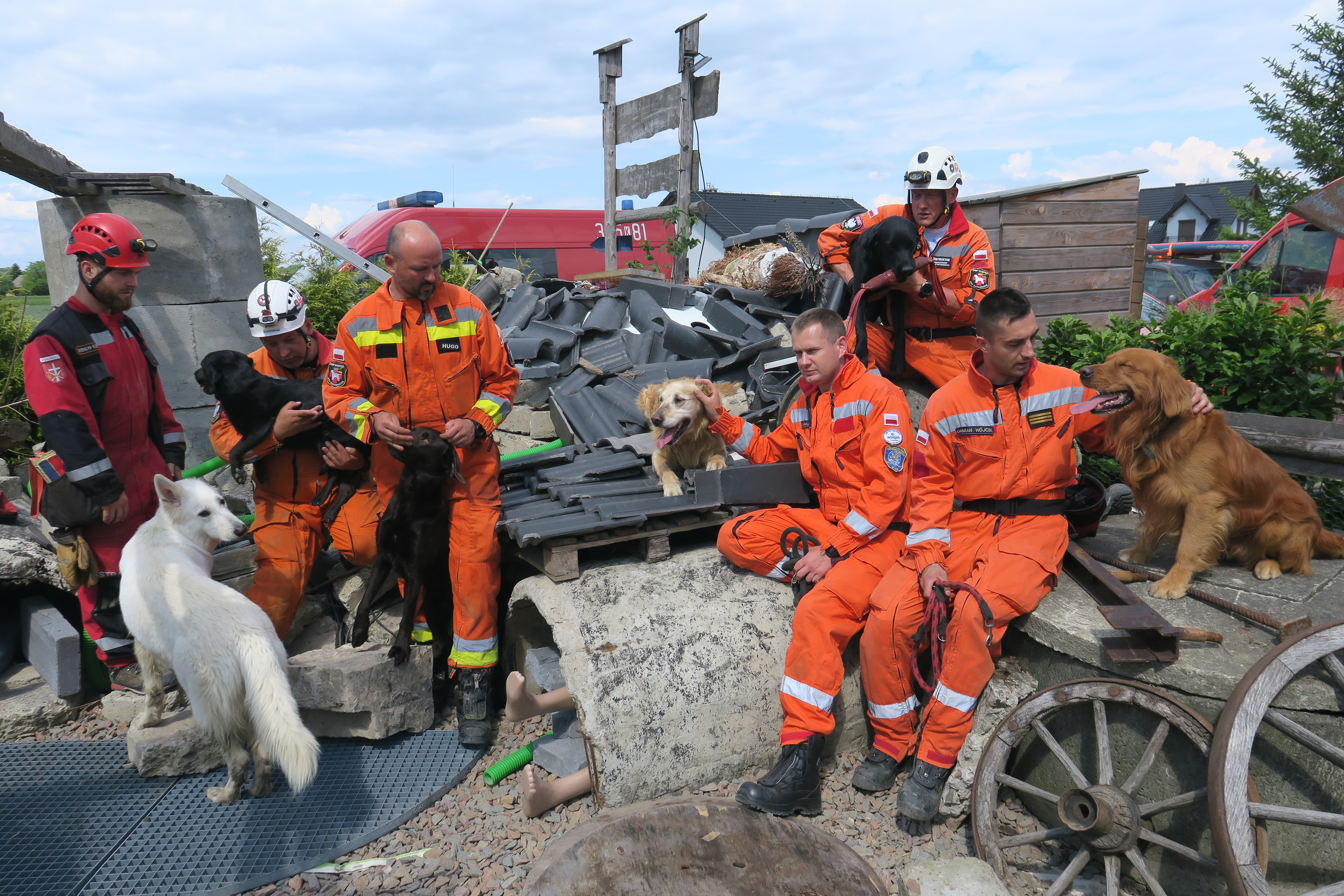 Psy ratownicze o specjalności gruzowiskowej ćwiczyły m.in. przeszukanie gruzowisk z pozorantem bez stożka zapachowego, oznaczenie widocznego/niewidocznego pozoranta, przeszukanie przestrzeni zadymionej, ignorancje fałszywych zapachów m.in. pozostawionej żywności, odzieży oraz eliminację fałszywych oznaczeń.