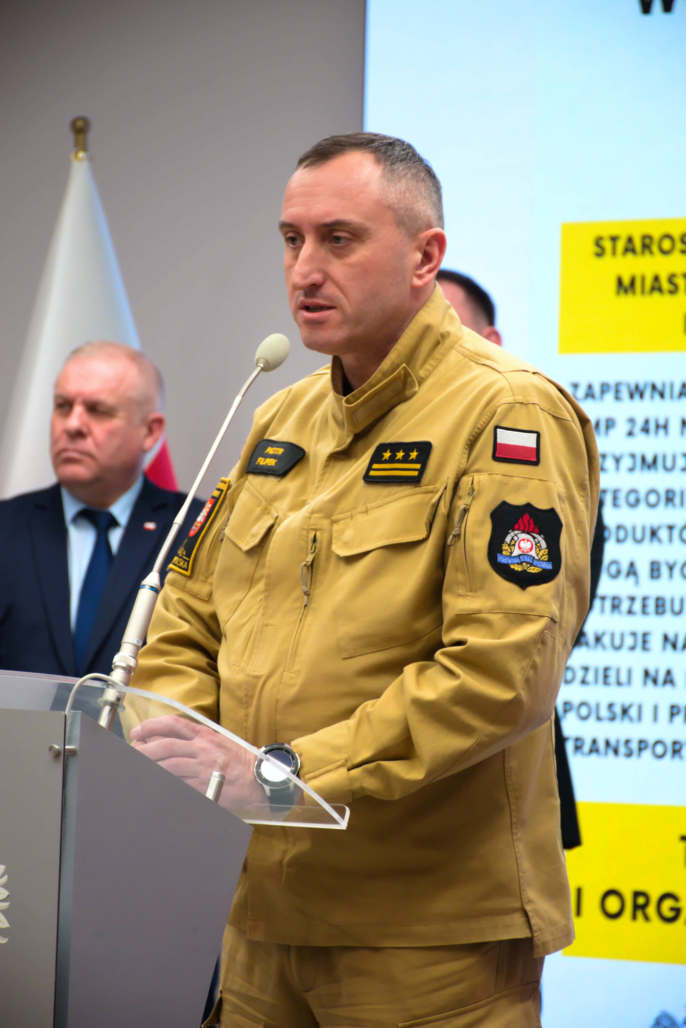 - Już od czwartku nasze dwa autokary przewożą uchodźców z Podkarpacia do poszczególnych lokalizacji w województwach. PSP włącza się w działania w sposób skoordynowany. Mamy kilka obszarów, w których uczestniczymy jako PSP. Już od wczoraj, zgodnie z apelem Komendanta Głównego, jednostki ochrony przeciwpożarowej PSP i OSP gromadzą sprzęt niezbędny dla kolegów strażaków ukraińskich – m.in. sprzęt podstawowy, gaśniczy, węże, hełmy, zabezpieczenia, zestawy medyczne. Na te chwilę mamy 180 palet sprzętu przygotowanego do dalszej dystrybucji. Od początku bierzemy również udział w organizacji punktów recepcyjnych. Dajemy wsparcie logistyczne, transport, wyposażenie. Cały czas bierzemy udział w bezpośrednim rozdysponowaniu osób z Ukrainy do poszczególnych miejsc w Małopolsce. Jesteśmy w trakcie współorganizacji pomocy humanitarnej w ramach Powiatowych Magazynów Pomocy. Mamy doświadczenia z pandemii związane z dystrybucją środków, te mechanizmy będziemy wykorzystywać podczas dystrybucji pomocy w ramach skoordynowanego strumienia pomocy dla Ukraińców – mówi małopolski komendant wojewódzki PSP st. bryg. Piotr Filipek.