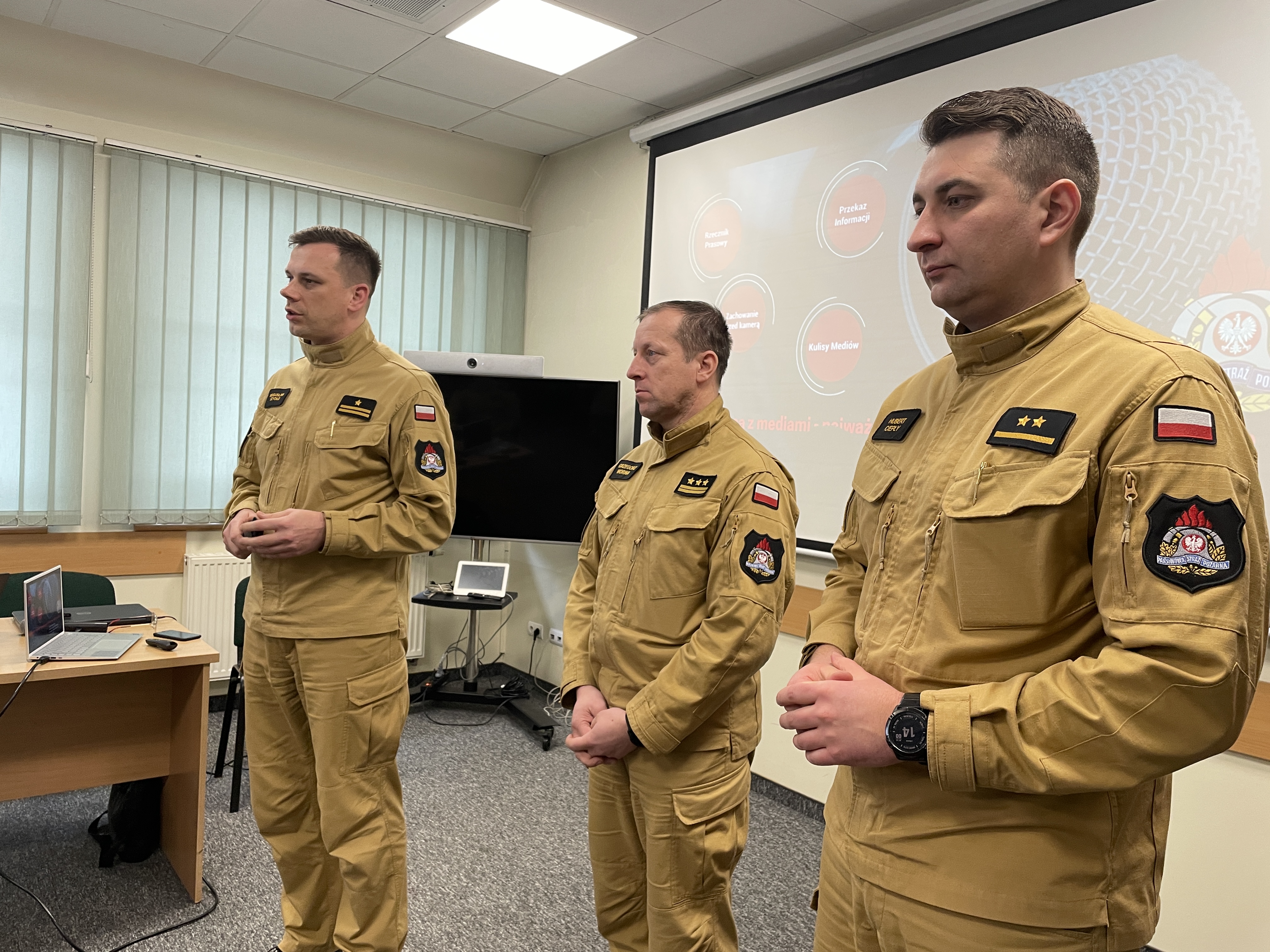 Dobra komunikacja może być kluczowa w zarządzaniu sytuacjami awaryjnymi. Oprócz części teoretycznej uczestnicy szkolenia mieli okazję wziąć udział w warsztatach dot. udzialania informacji mediom z miejsca akcji.