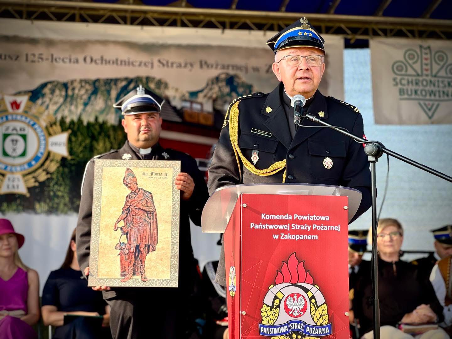 W uroczystości udział wziął bryg. Marcin Głogowski Zastępca Małopolskiego Komendanta Wojewódzkiego Państwowej Straży Pożarnej.