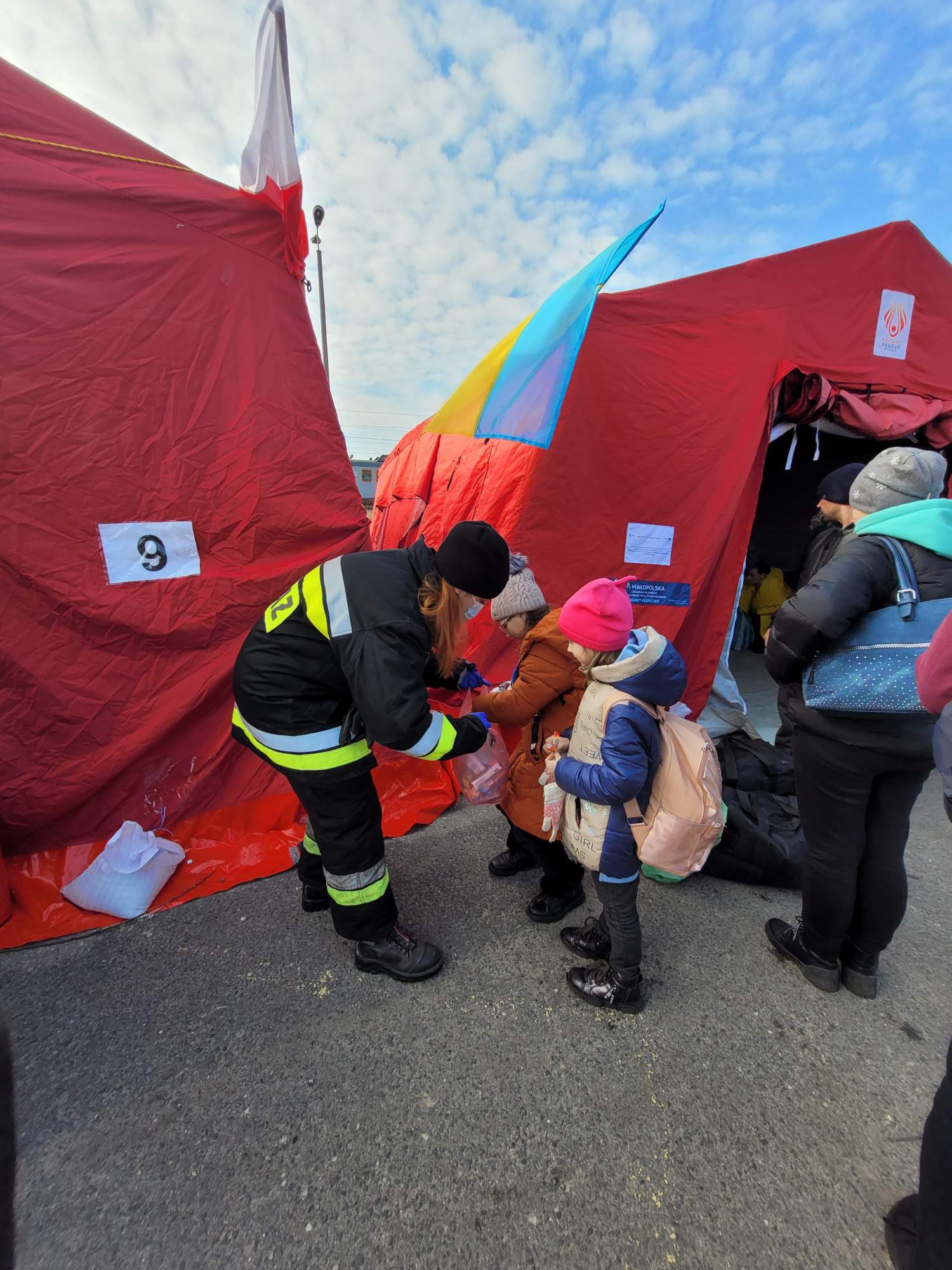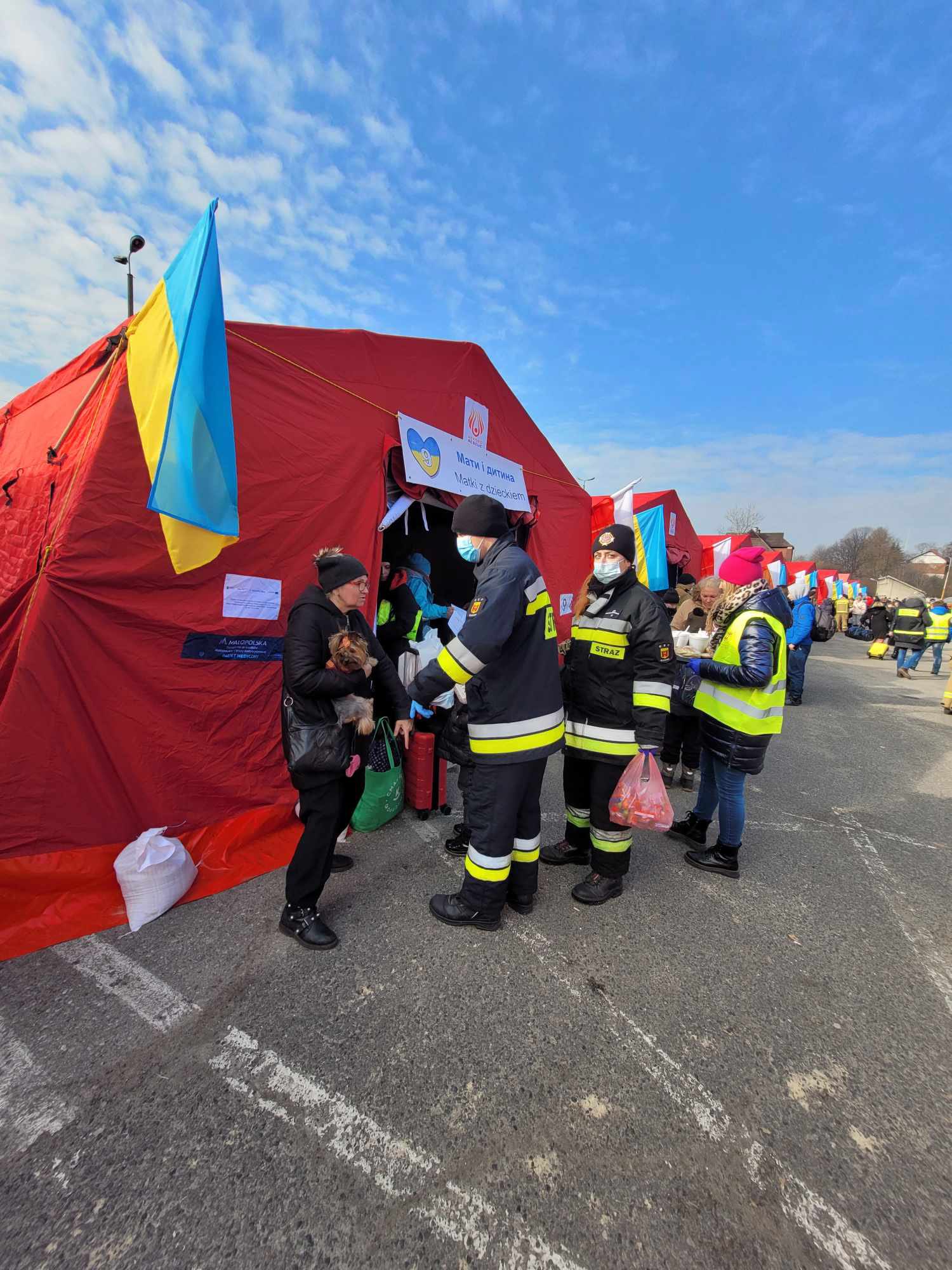 W budowie miasteczka namiotowego uczestniczyli strażacy z kompani logistycznej WATRA. Do Olkusza dotarło już kilka pociągów humanitarnych z uchodźcami. Osoby, które przyjechały, zostały natychmiastowo zaopiekowane, trafiły do namiotów, otrzymały wyżywienie, informację o tym, że mogą spokojnie myśleć o swojej przyszłości i jechać do bazy noclegowej.