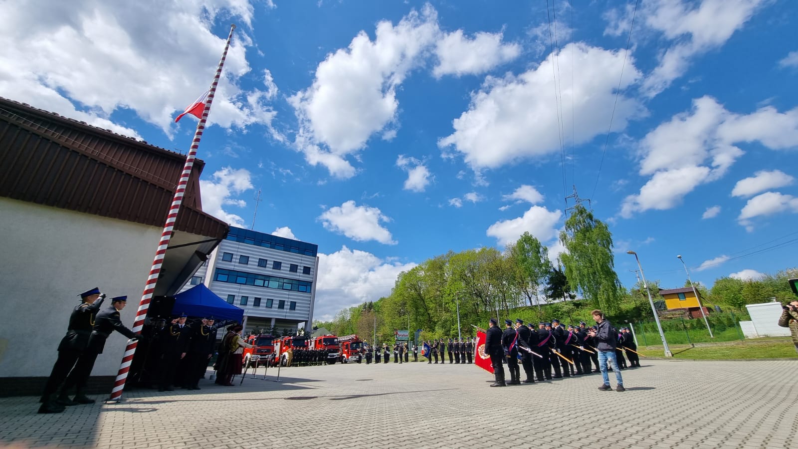 Uroczystość rozpoczęła się od złożenia meldunku Zastępcy Małopolskiego Komendanta Wojewódzkiego Państwowej Straży Pożarnej bryg. Przemysławowi Przęczkowi przez dowódcę uroczystości st. kpt. Damiana Chmurę. Po dokonaniu przeglądu pododdziałów, w czasie podnoszenia flagi państwowej na maszt odegrany został hymn państwowy.