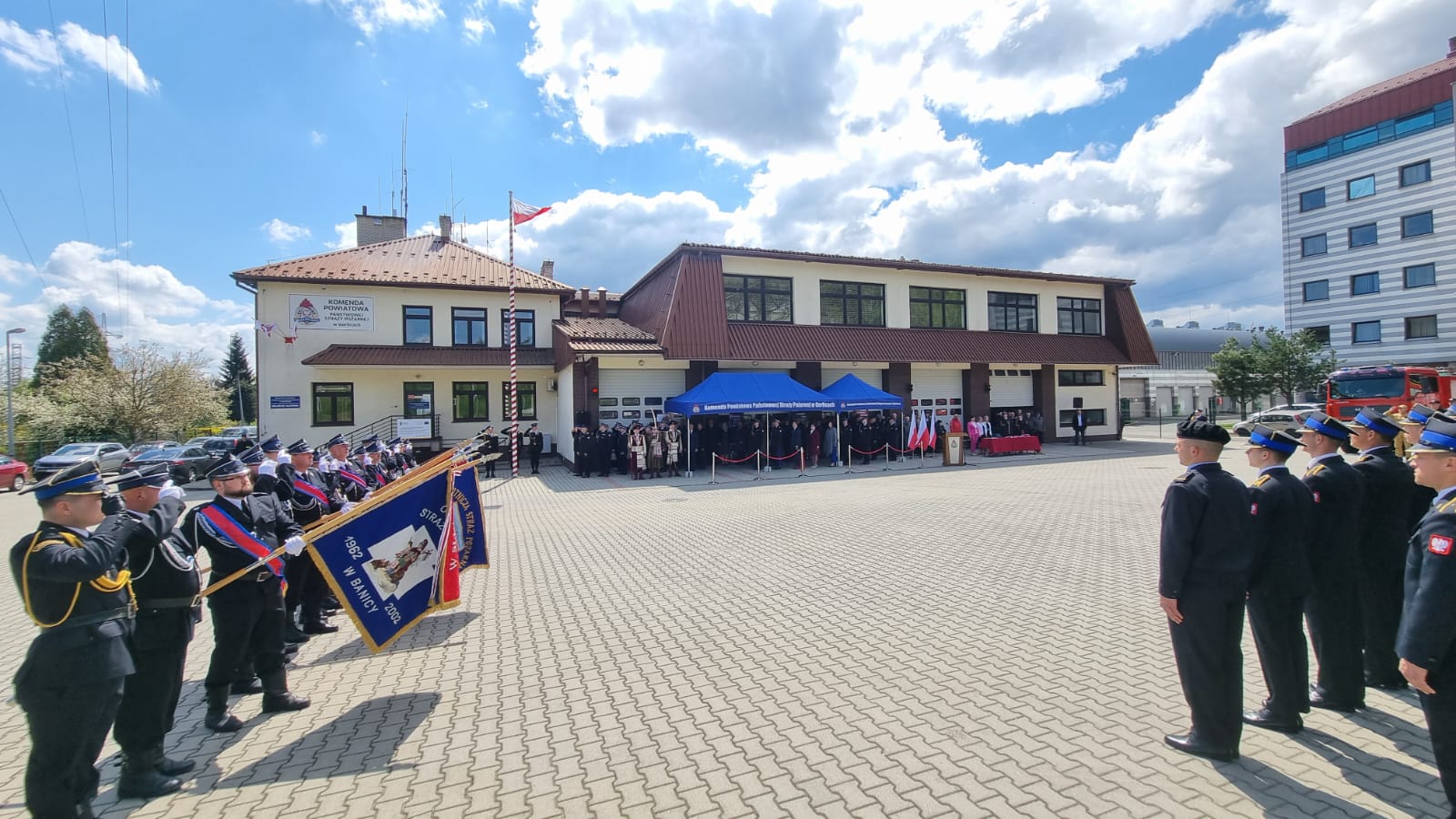 9.05.2023 r. na placu Komendy Powiatowej PSP w Gorlicach nadbryg. Piotr Filipek Małopolski Komendant Wojewódzki PSP wział udział w uroczystym apelu. Przed zbióką została odprawiona Msza Święta w intencji gorlickich strażaków w kościele pw. MB Nieustającej Pomocy w "Gliniku".