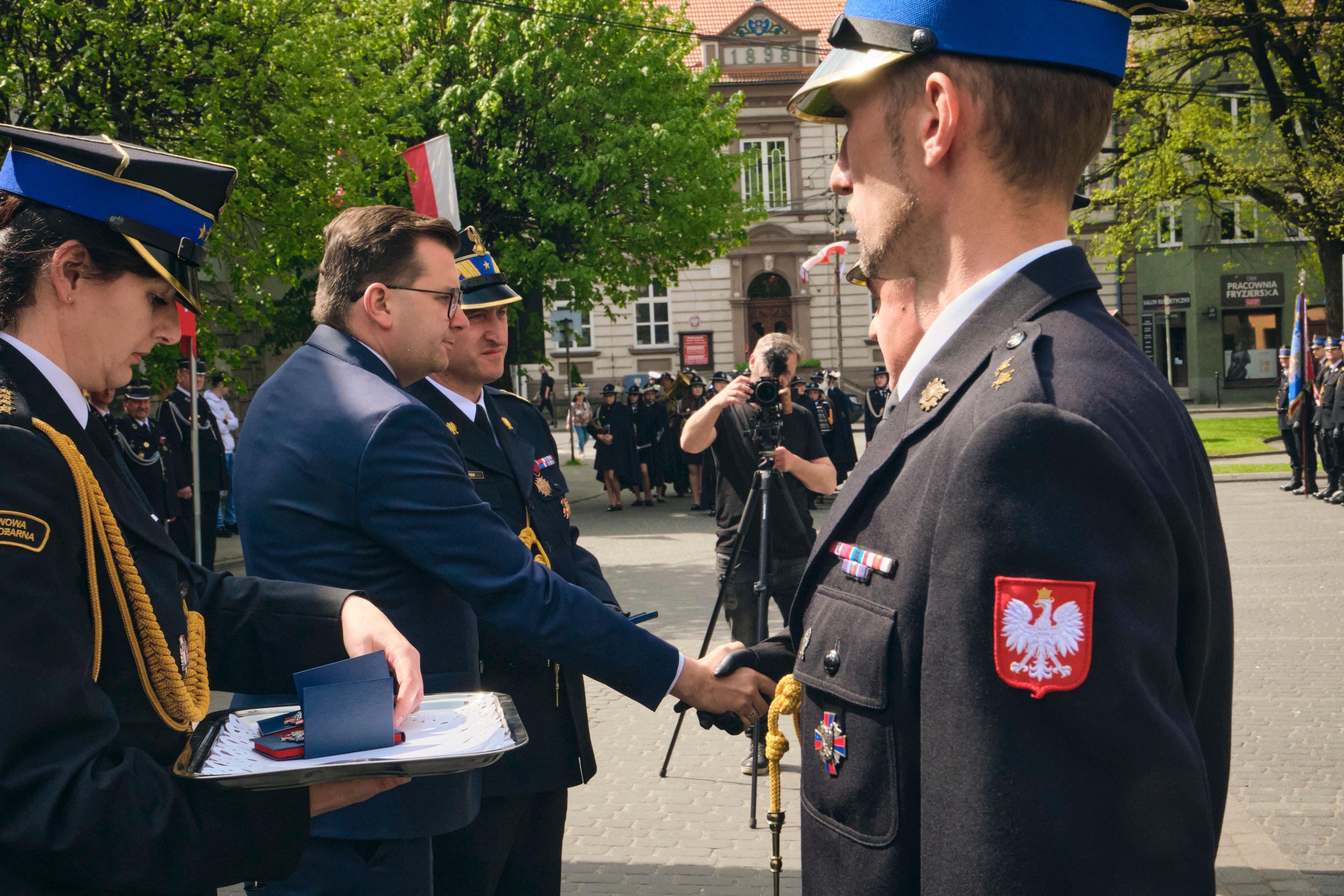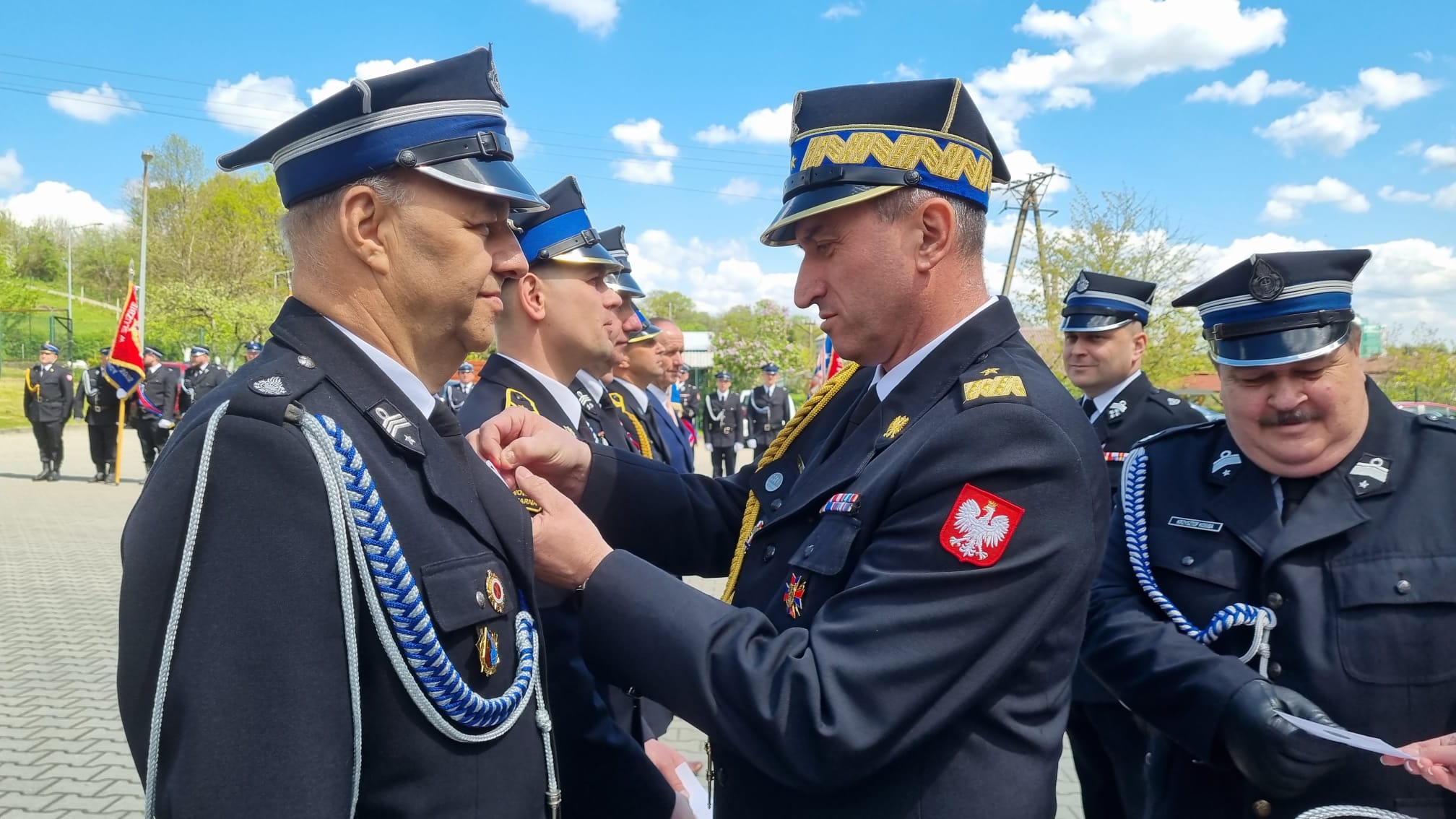 Nadbryg. Piotr Filipek wspólnie z Wojewodą Małopolskim Łukaszem Kmitą wręczył także przyznany przez prezydenta RP Andrzeja Dudę za zasługi dla pożarnictwa Brązowy Krzyż Zasługi. Zasłużeni druhowie odebrali też odznaczenia resortowe. Następnie strażakom PSP wręczone zostały awanse na wyższe stopnie służbowe.