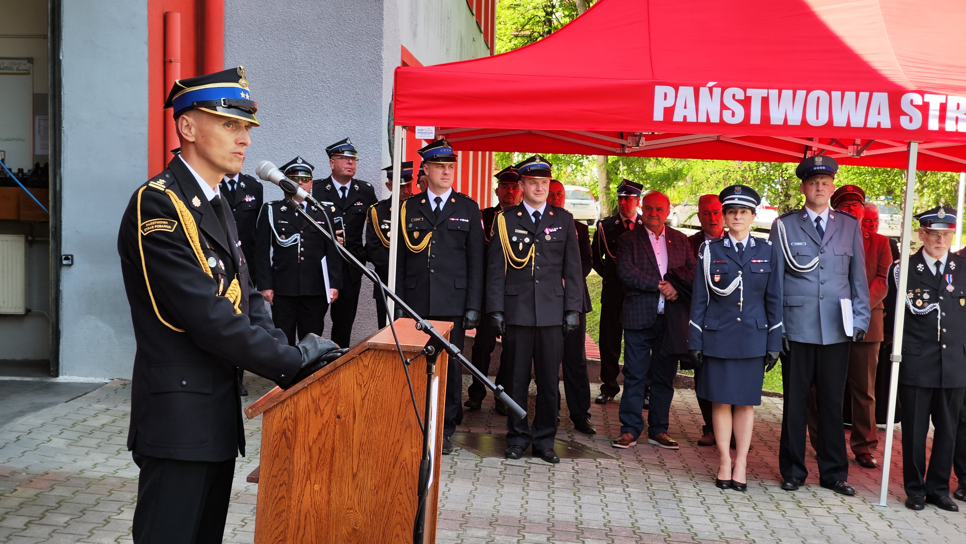 Zaproszonych gości, funkcjonariuszy oraz pracowników cywilnych Komendy Powiatowej Państwowej Straży Pożarnej w Wieliczce, Druhny oraz Druhów Ochotniczych Straży Pożarnych powiatu wielickiego powitał Komendant Powiatowy mł. bryg. Leszek Kasiński. W swym przemówieniu podziękował wszystkim zaproszonym gościom oraz instytucjom wspierającym straż pożarną w codziennej służbie, podkreślając jak ważną rolę pełnią strażacy w obecnym czasie.