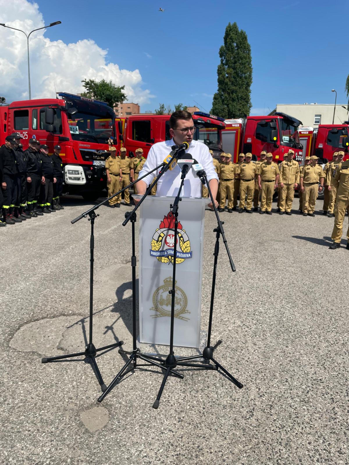 Być ofiarnym i mężnym w ratowaniu zagrożonego życia ludzkiego i wszelkiego mienia – tę przysięgę składają strażacy. Dziś spełnia się ona też w szerszym wymiarze. Prawie 150 polskich strażaków wraz ze specjalistycznym sprzętem oraz prawie 50 samochodami wyrusza na pomoc w walce z pożarami w Grecji. Po raz kolejny Polska pokazuje solidarność z innymi państwami oraz gotowość do wysokospecjalistycznych działań ratowniczo-gaśniczych. Jak zawsze wywiązujemy się ze zobowiązań i działamy wespół z innymi służbami. W takich sytuacjach jak wielkie pożary, które nawiedziły Grecję, w szczególności widać znaczenie zasady: „Razem jesteśmy silniejsi” – mówi wojewoda małopolski Łukasz Kmita
