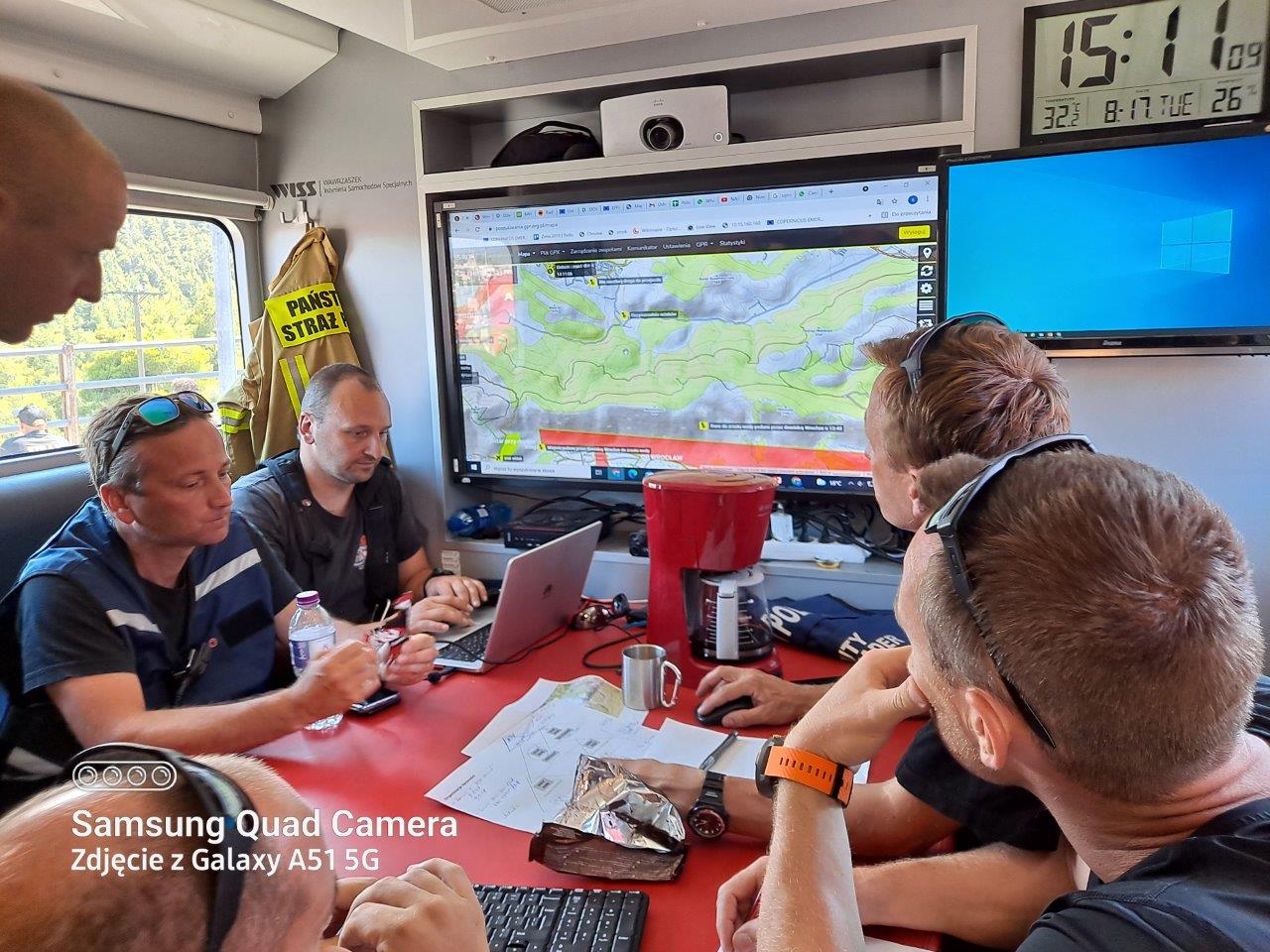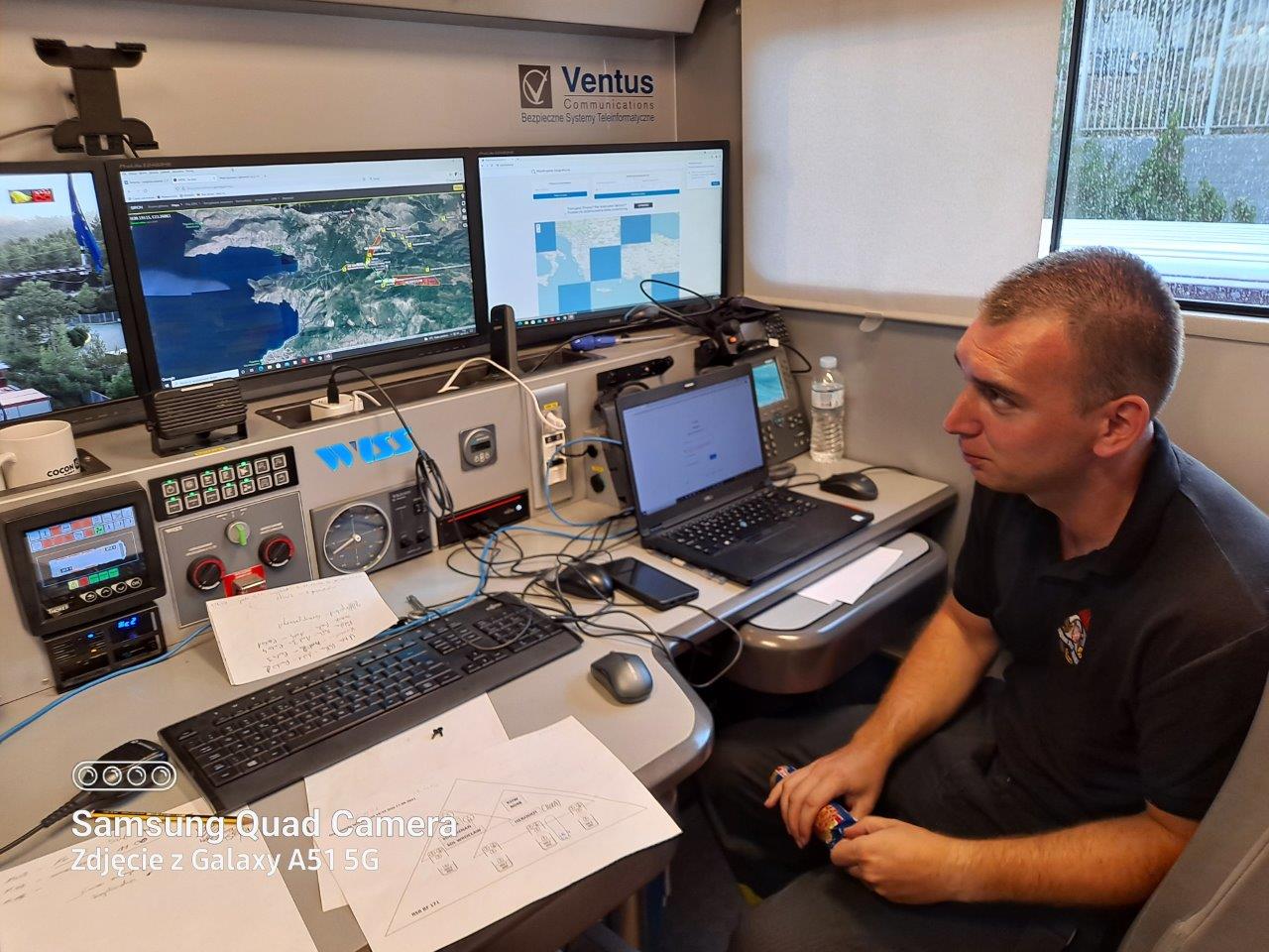 Strażacy z Krakowa zaangażowani są w działania w okolicach Villia Attica na zachód od Aten. Są odpowiedzialni za zapewnienie skutecznej, dobrze zorganizowanej łączności, która pozwala na sprawne przekazywanie ważnych informacji i służy porozumiewaniu się strażaków pracujących na różnych stanowiskach na terenie akcji. Właściwie zorganizowana łączność umożliwia dowodzenie i współdziałanie, co w tak trudnych warunkach w wielu sytuacjach jest kluczowe.
