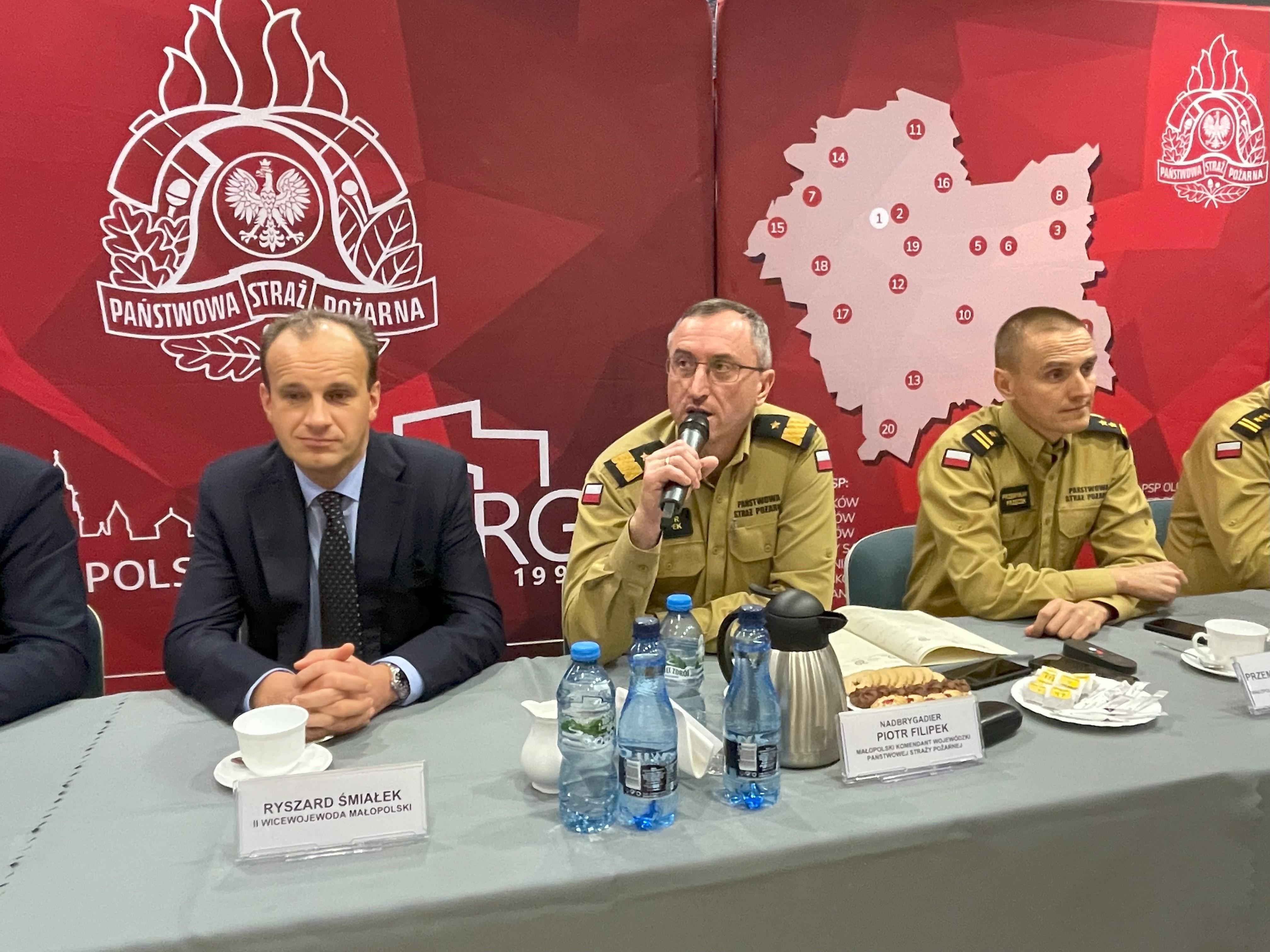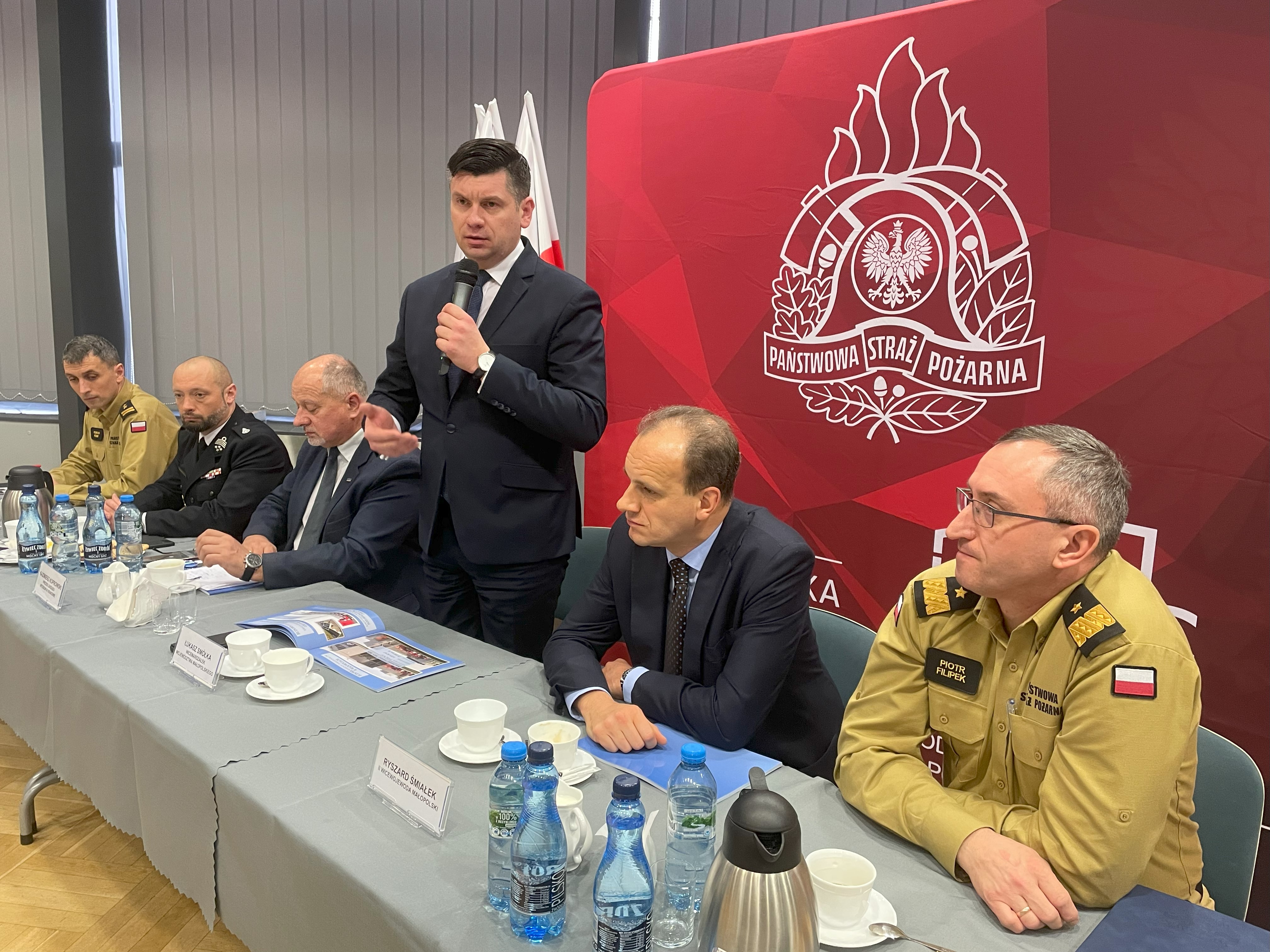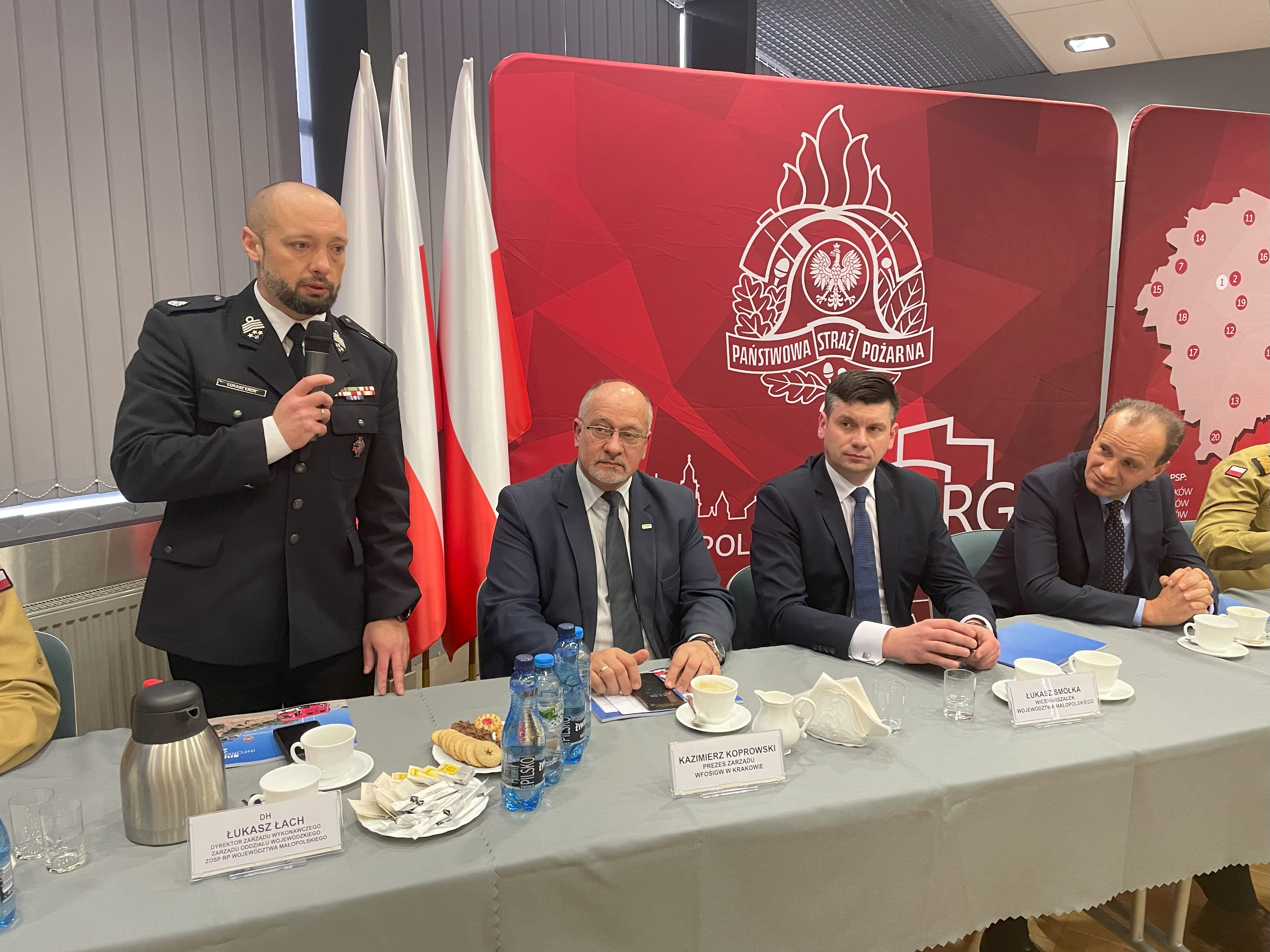 Po przywitaniu przez nadbryg. Piotra Filipka Małopolskiego Komendanta Wojewódzkiego Państwowej Straży Pożarnej gości i słowie wstępu został wyświetlony film, który przedstawił działalość małopolskich strażaków w całym 2023 r. W wydarzeniu udział wzięli Pan Ryszard Śmiłek Wicewojewoda Małopolski, Pan Łukasz Smółka Wicemarszałek Województwa Małopolskiego, Pan Kazimierz Koprowski Prezes Wojewódzkiego Funduszu Ochrony Środowiska i Gospodarki Wodnej w Krakowie, Pan Łukasz Łach Dyrektor Zarządu Wykonawczego Oddziału Wojewódzkiego ZOSP RP woj. małopolskiego, p.o. Komendanta Szkoły Aspirantów PSP w Krakowie st. bryg. Piotr Gancarczyk oraz kadra kierownicza PSP woj. małopolskiego.
