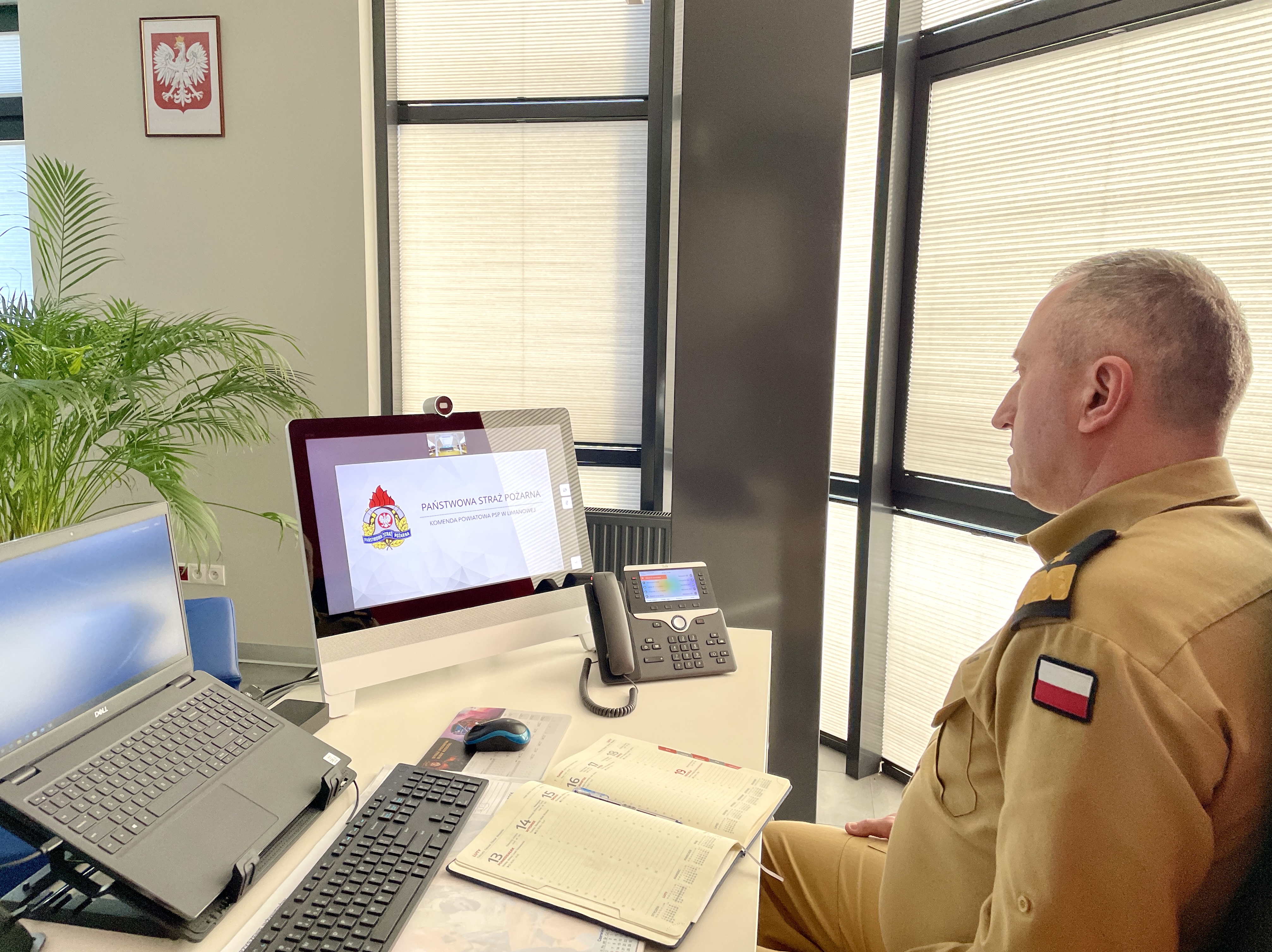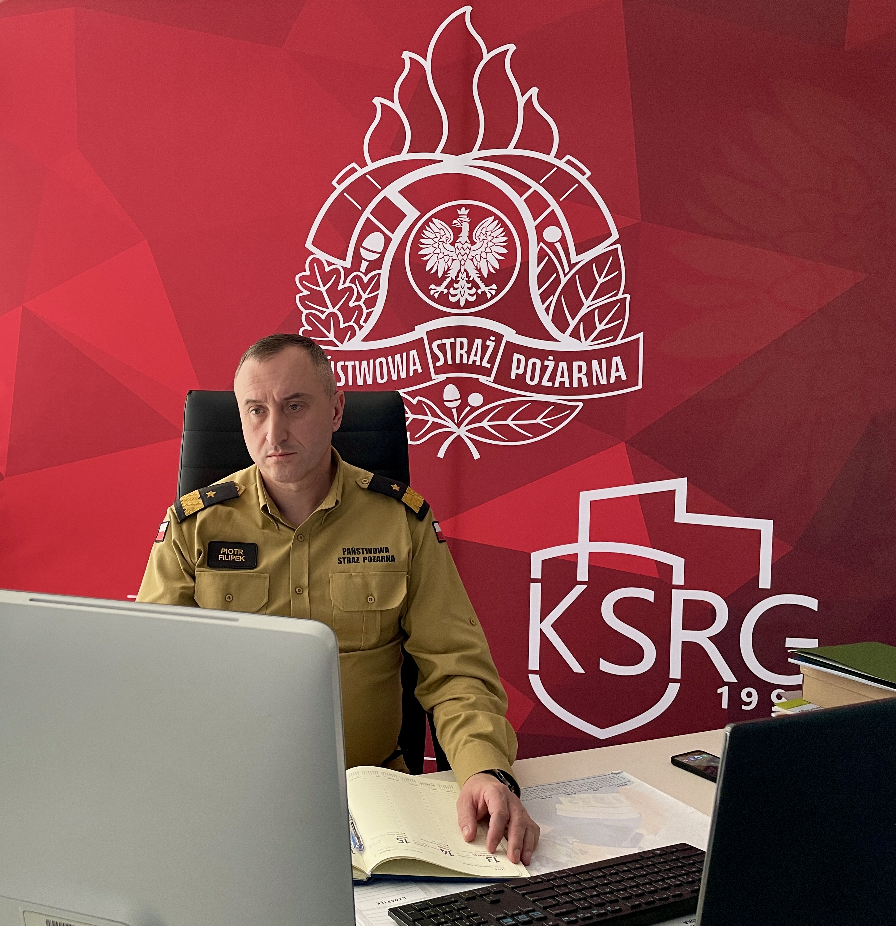 Nadbryg. Piotr Filipek Małopolski Komendant Wojewódzki Państwowej Straży Pożarnej wziął udział w naradzie w formie wideokonferencji. Podziękował strażakom za zaangażowanie i poświęcenie w realizacji zadań służbowych oraz rozwój ochrony przeciwpożarowej na terenie ich powiatu.