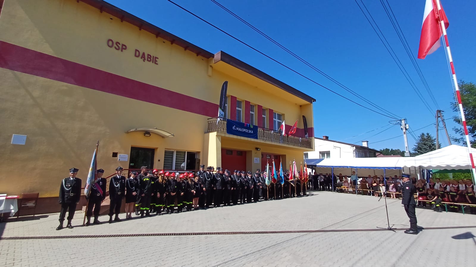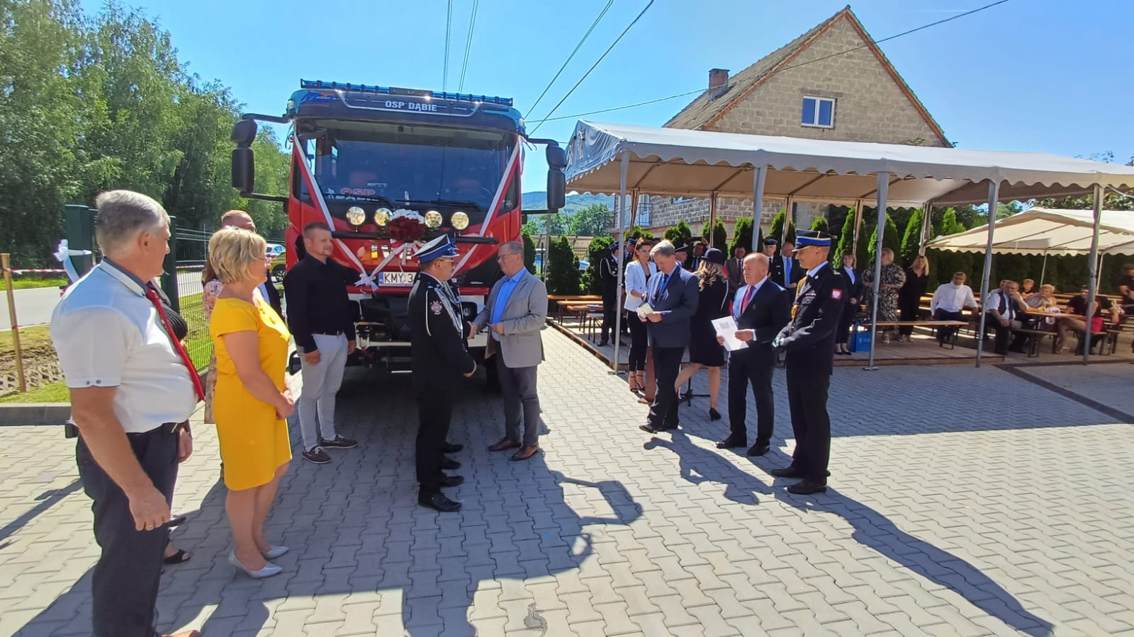 Zastępca Małopolskiego Komendanta Wojewódzkiego PSP bryg. Przemysław Przęczek wziął udział w jubileuszu 75-lecia jednostki OSP w Dąbiu oraz przekazaniu nowego samochodu ratowniczo - gaśniczego. Nowy samochód ratowniczo-gaśniczy jest wyposażony w najnowsze technologie i narzędzia, które pozwalają skutecznie działać w różnorodnych sytuacjach. Od specjalistycznego sprzętu gaśniczego po narzędzia do wycinania i wydobywania, pojazd ten umożliwia strażakom efektywną pracę nawet w najtrudniejszych warunkach.