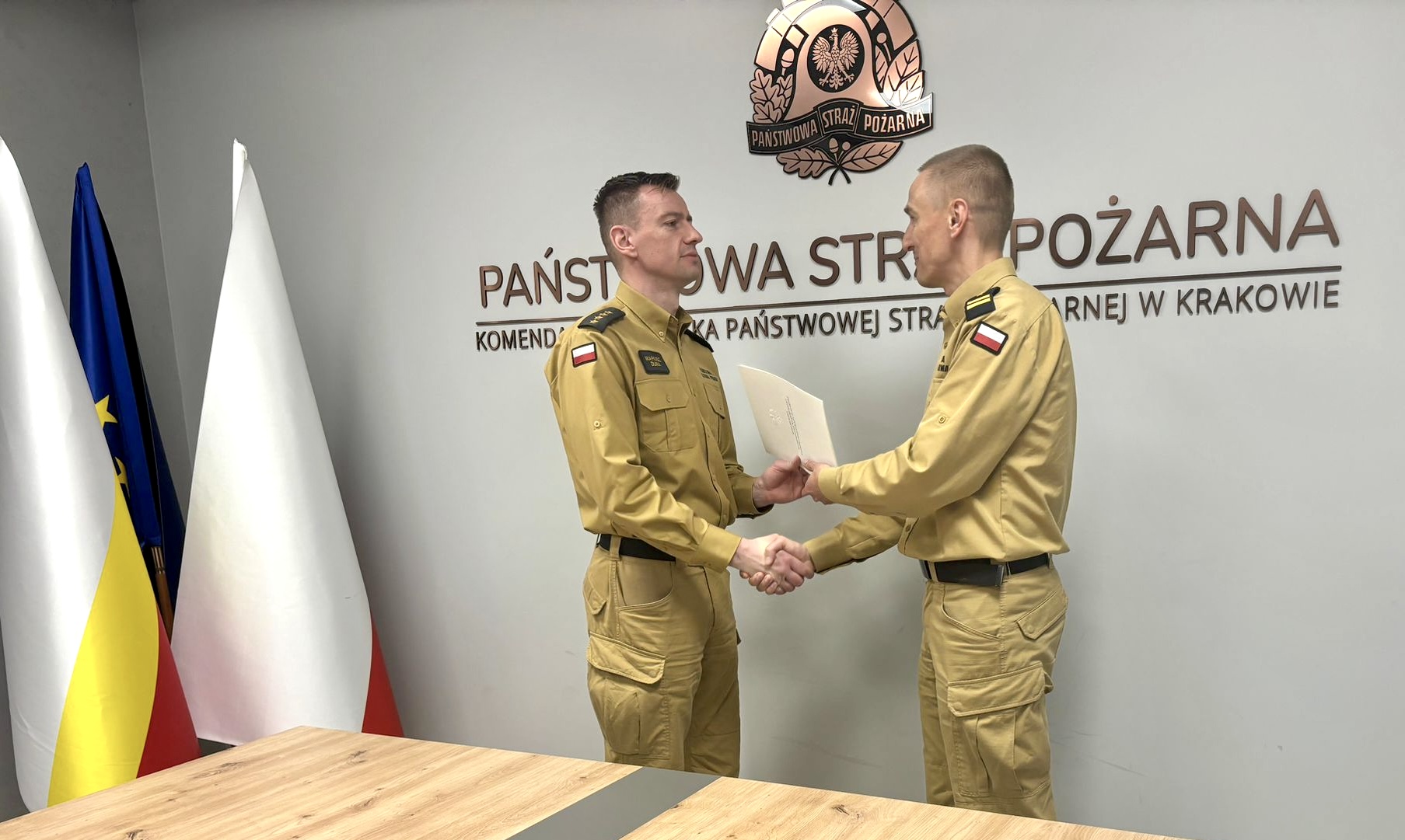 Uroczystość udbyła się w Komendzie Wojewódzkiej Państwowej Straży Pożarnej w Krakowie w obecności Zastępców Małopolskiego Komendanta Wojewódzkiego Państwowej Straży Pożarnej st. bryg. Arkadiusza Kielina i st. bryg. Piotra Gadowskiego.