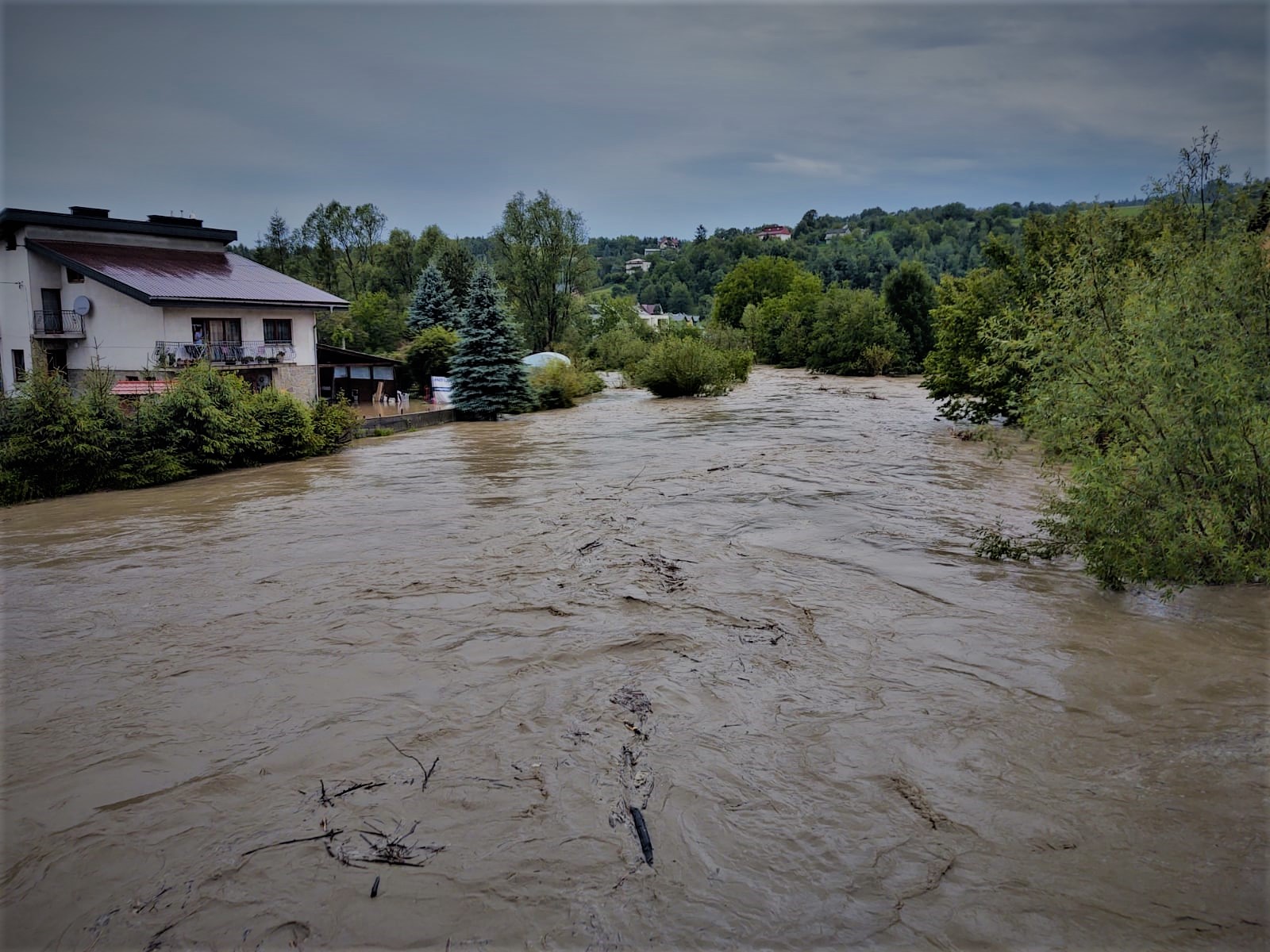- Nowy Sącz - Po przybyciu na miejsce zdarzenia i wstępnym rozpoznaniu ustalono, że na ul. Lwowskiej woda wylała z rzeki Łubinka, co spowodowało zalanie posesji, budynków mieszkalnych i gospodarczych. Zamiarem taktycznym była pomoc mieszkańcom w zabezpieczaniu domostw przed wodą poprzez udrożnianie przepustów, usuwanie powalonych drzew, czy też budowanie odcinków wałów z worków z piaskiem. Siły i Środki Państwowej i Ochotniczej Straży Pożarnej: 25 zastępów, 127 strażaków.