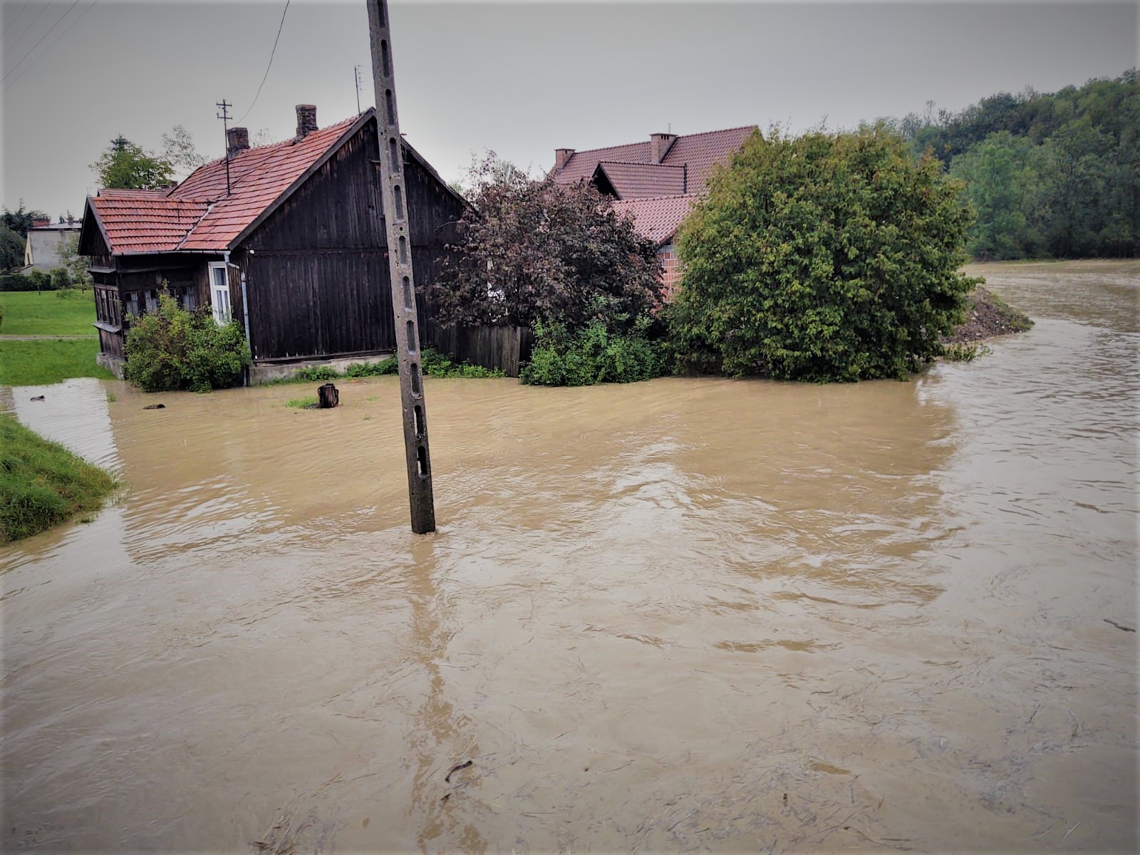 - Stróże pow. tarnowski - Po przybyciu na miejsce zdarzenia i przeprowadzeniu rozpoznania stwierdzono, że na skutek gwałtownych opadów deszczu doszło do zalania piwnicy w budynku mieszkalnym jednorodzinnym, podmycia i uszkodzenia mostka przejazdowego oraz podmycia betonowego muru ogrodzeniowego. KDR podjął decyzję o ewakuacji mieszkańców z budynku mieszkalnego jednorodzinnego, w związku z możliwością podmycia przez potok fundamentów budynku. W wyniku przeprowadzonych oględzin w obecności burmistrza podjęto decyzję o rozbiórce uszkodzonego mostka przejazdowego, który stwarzał zagrożenie związane z tamowaniem potoku. Po usunięciu żelbetowej konstrukcji mostka zastępy Straży Pożarnej zabezpieczyły miejsce workami z piaskiem celem uniknięcia wypłukania brzegu potoku przy jezdni. Nie stwierdzając innych zagrożeń działania zakończono. Siły i Środki Państwowej i Ochotniczej Straży Pożarnej: 4 zastępy, 22 strażaków.