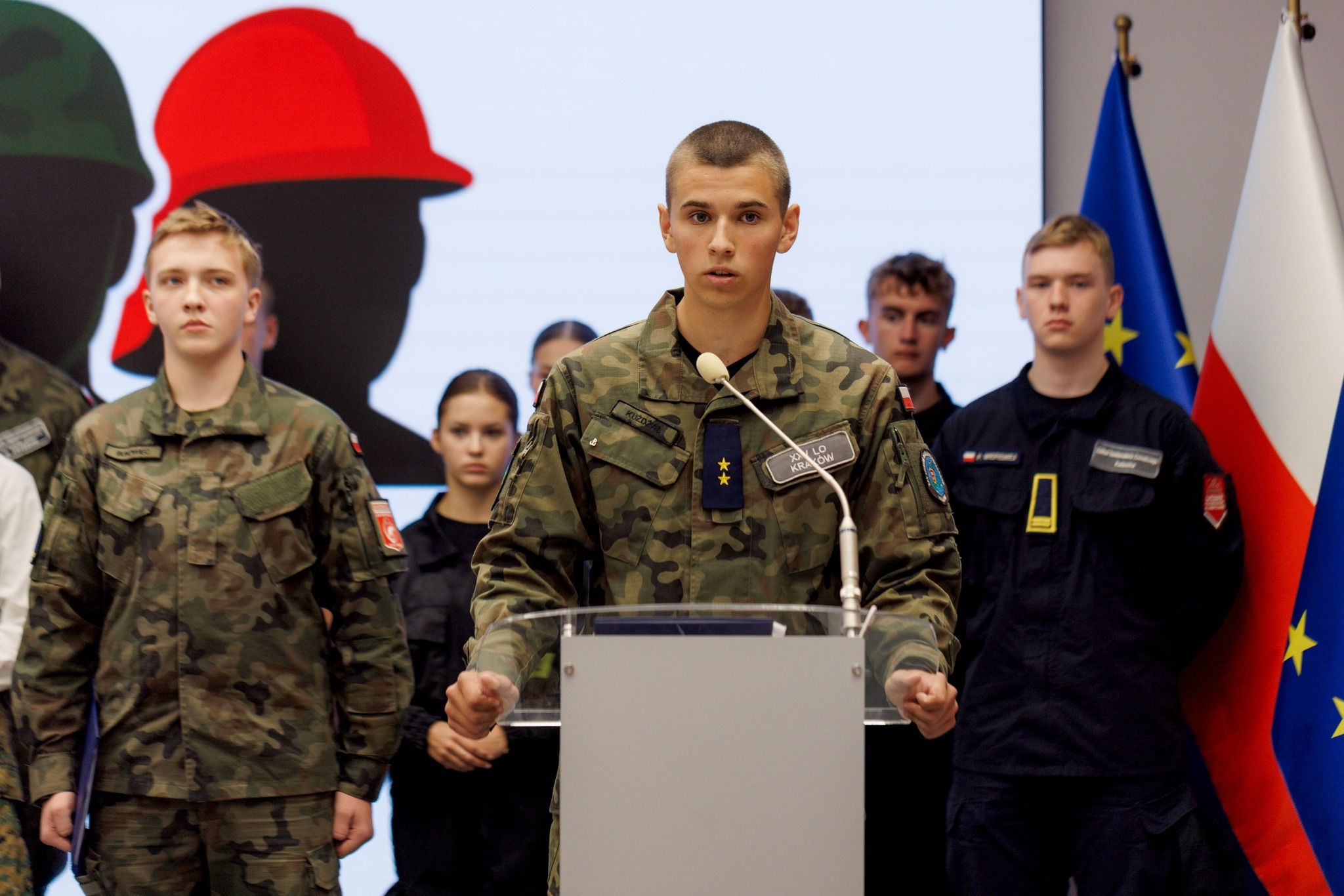 Briefing prowadził rzecznik prasowy Sztabu Młodych Mundurowych Ziemowit Duch z I LO w Krakowie.