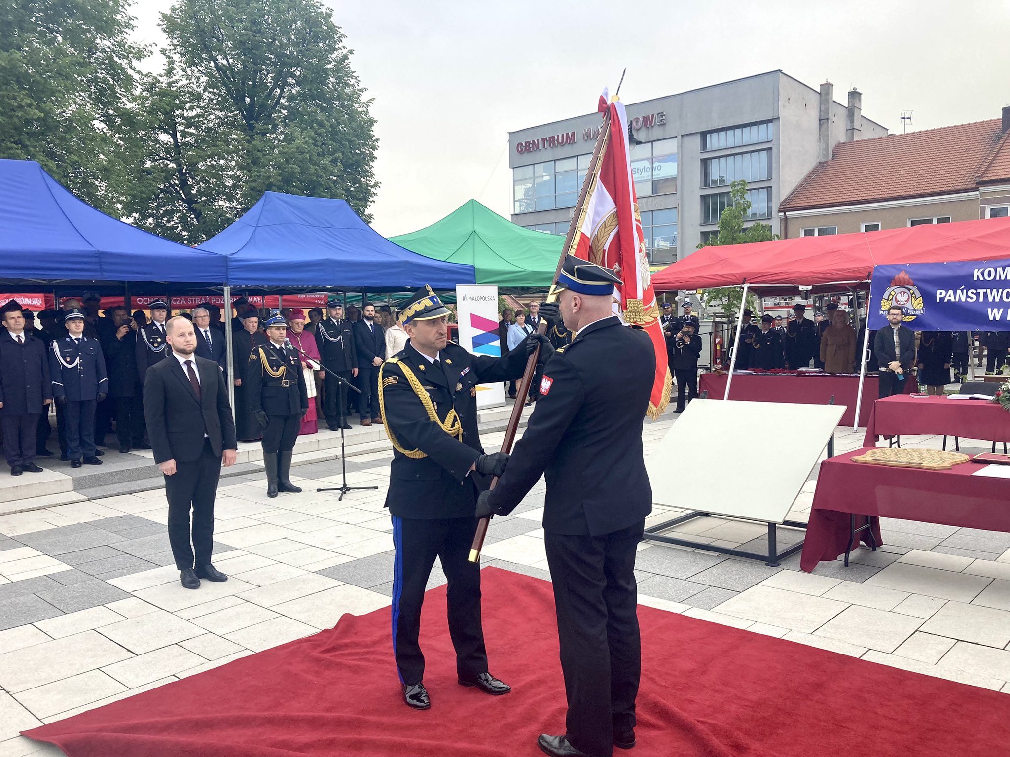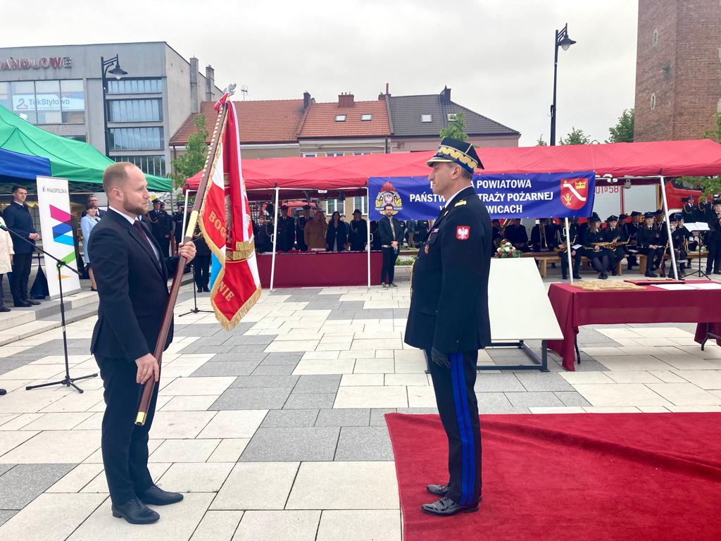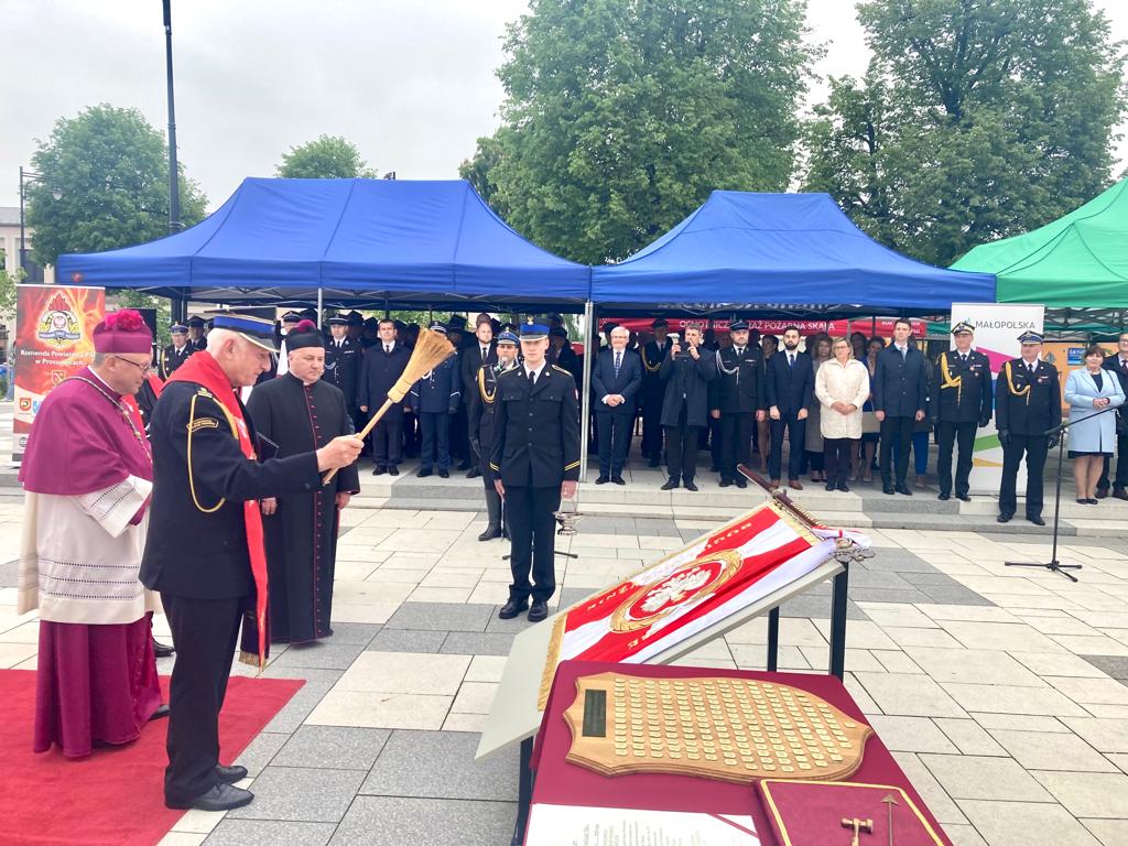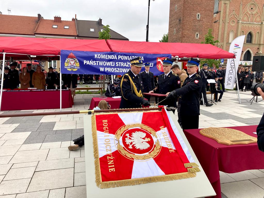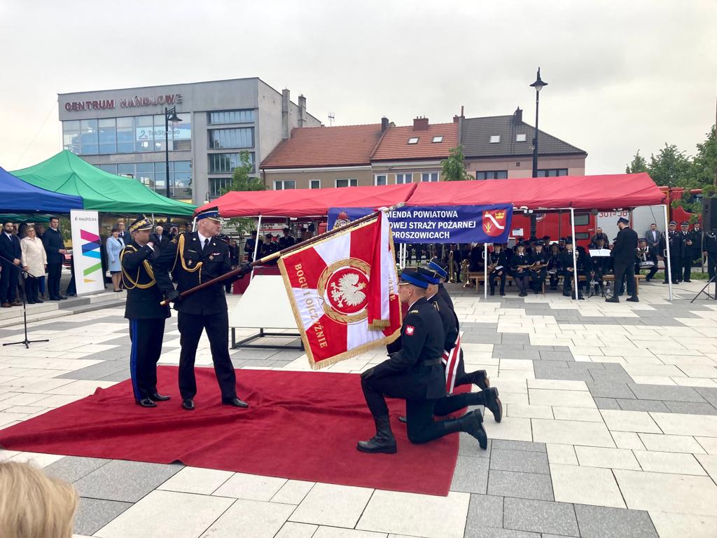 19 maja 2023 roku na Rynku Miejskim w Proszowicach odbyły się Powiatowe Obchody Dnia Strażaka, połączone z nadaniem sztandaru Komendzie Powiatowej Państwowej Straży Pożarnej w Proszowicach.