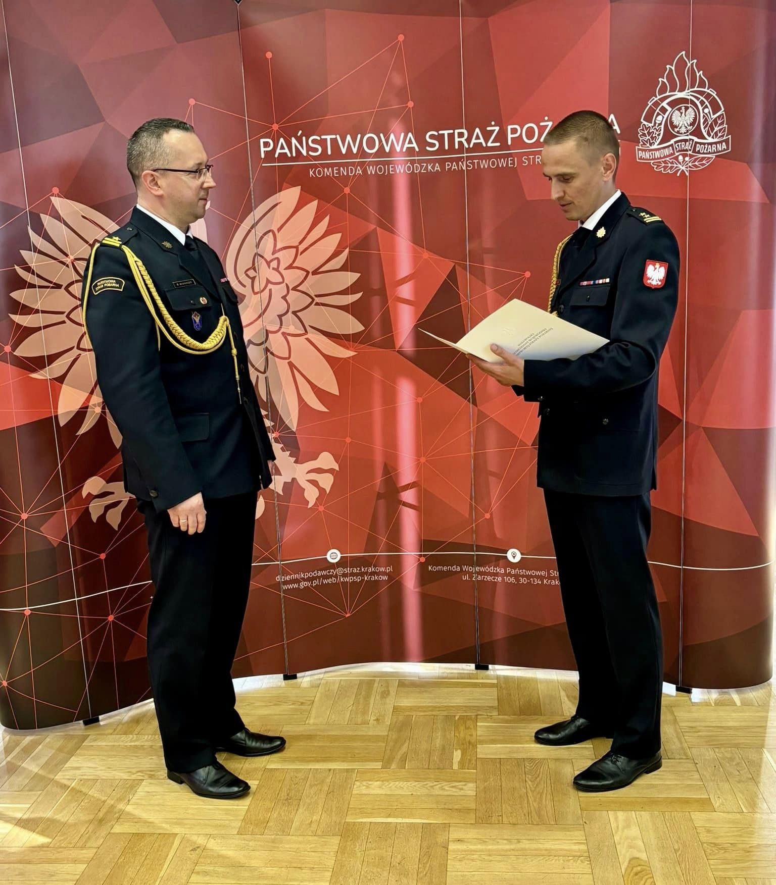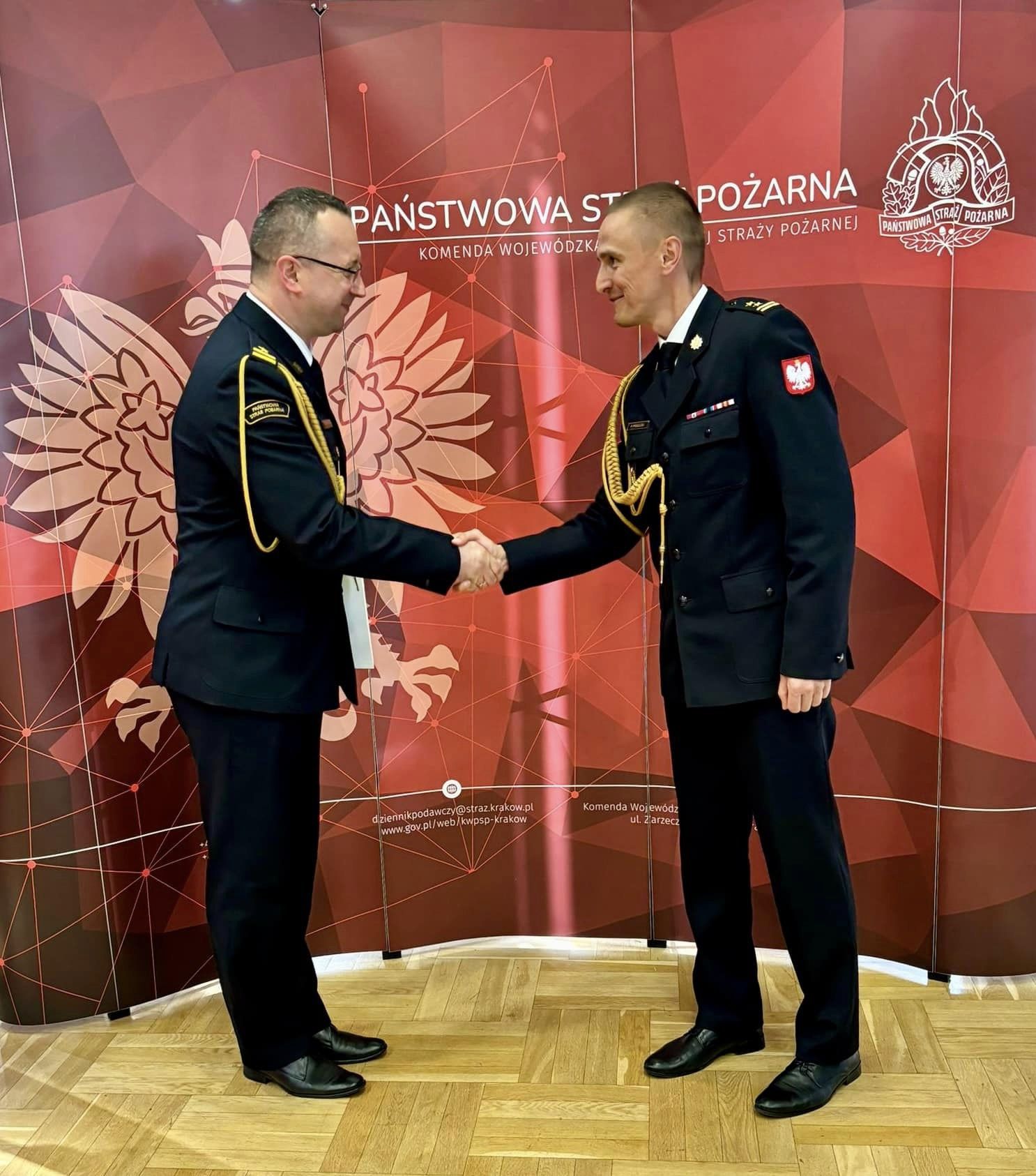 8.04.2024 r. Małopolski Komendant Wojewódzki PSP bryg. Przemysław Przęczek powierzył pełnienie obowiązków Zastępcy Komendanta Powiatowego PSP w Dąbrowie Tarnowskiej mł. bryg. Danielowi Misiaszkowi. Uroczystość odbyła się w Komendzie Wojewódzkiej Państwowej Straży Pożarnej w Krakowie.