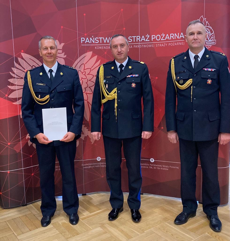 Uroczystość odbyła się w Komendzie Wojewódzkiej PSP w Krakowie w obecności Zastępców MKW bryg. Przemysława Przęczka, bryg. Pawła Żaby oraz Komendanta Powiatowego PSP w Chrzanowie mł. bryg. Andrzeja Dybała.