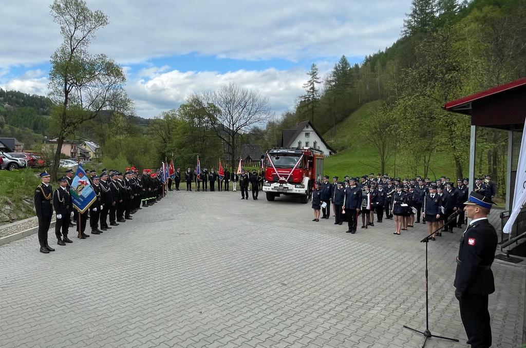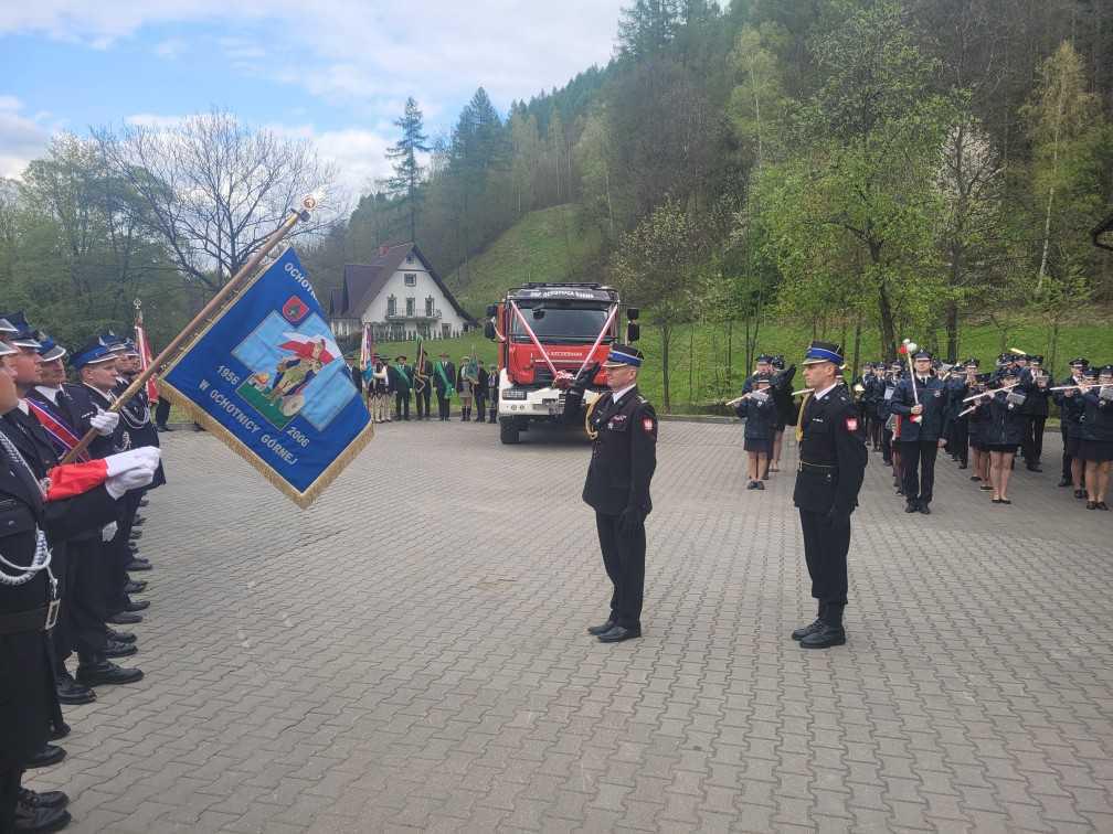 st. bryg. Mariusz Łaciak Zastępca Małopolskiego Komendanta Wojewódzkiego PSP wziął udział w przekazaniu średniego samochodu ratowniczo - gaśniczego dla OSP w Ochotnicy Górnej w pow. nowotarskim.