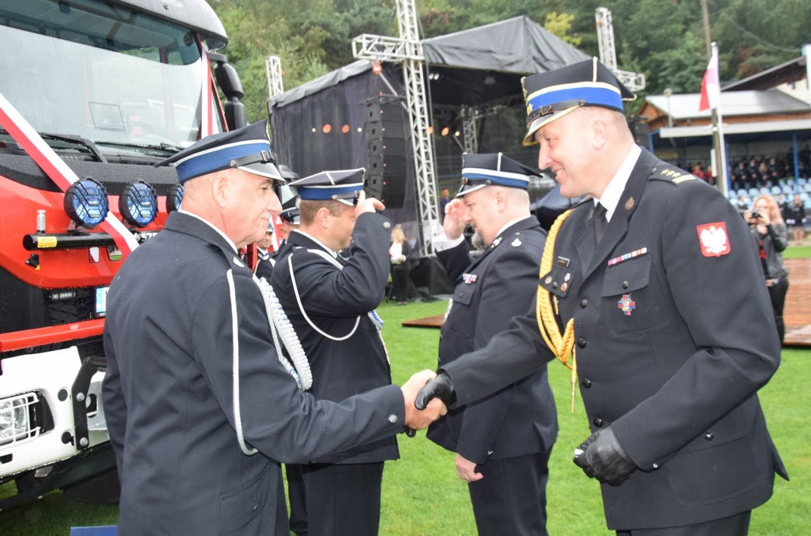 24.09.2023 r. Zastępca Małopolskiego Komendanta Wojewódzkiego PSP st. bryg. Mariusz Łaciak wziął udział w uroczystym poświęceniu i przekazaniu samochodów ratowniczo - gaśniczych dla jednostki OSP Orawka z pow. nowotarskiego.