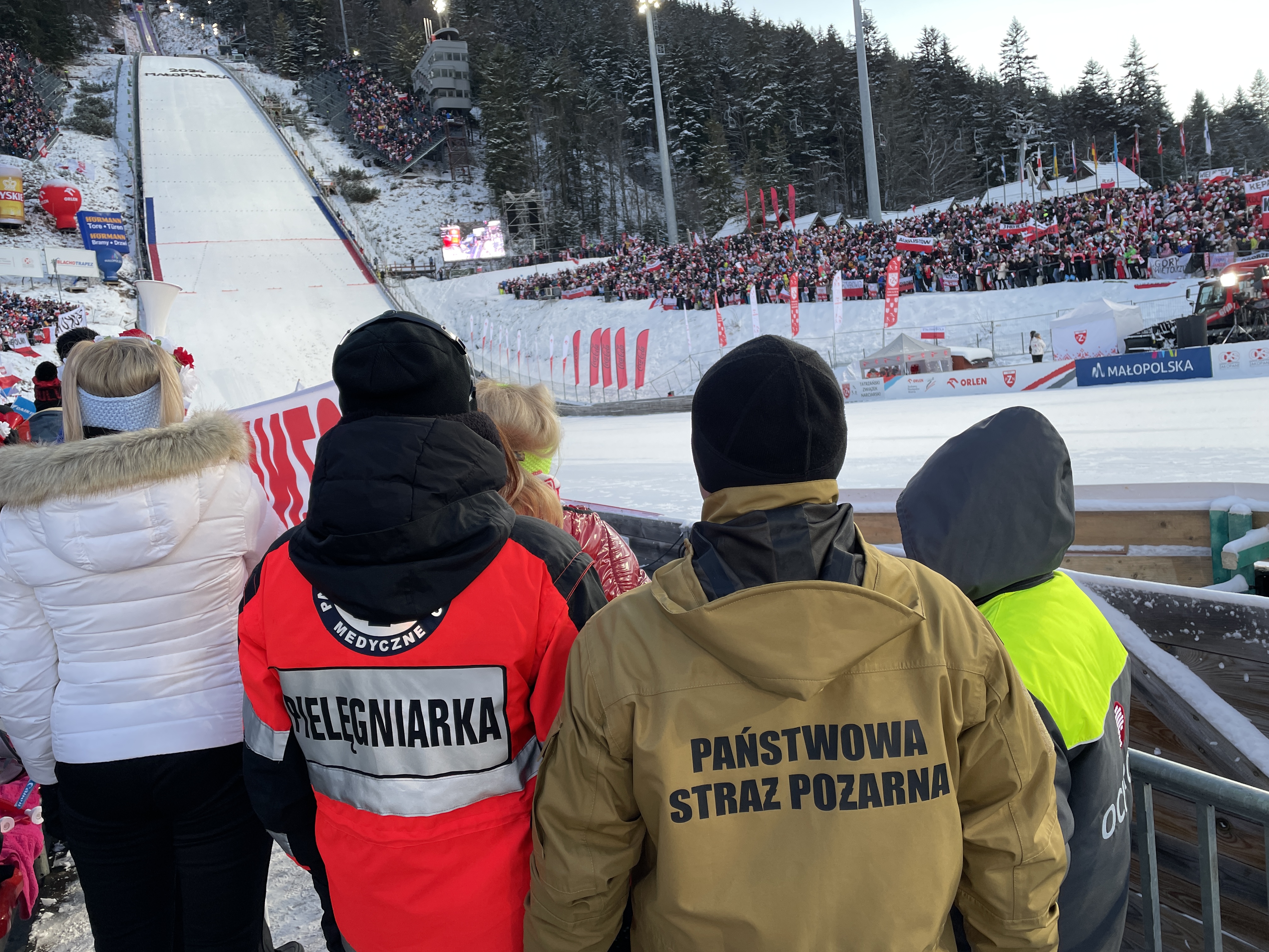 5. Współpraca z Innymi Służbami: Bezpieczeństwo operacyjne podczas Pucharu Świata w Skokach Narciarskich opierało się na ścisłej współpracy między różnymi służbami - od policji po służby medyczne. Straż pożarna aktywnie uczestniczyła w komunikacji i koordynacji działań, co przyczyniło się do skutecznej reakcji na wszelkie potencjalne sytuacje kryzysowe.