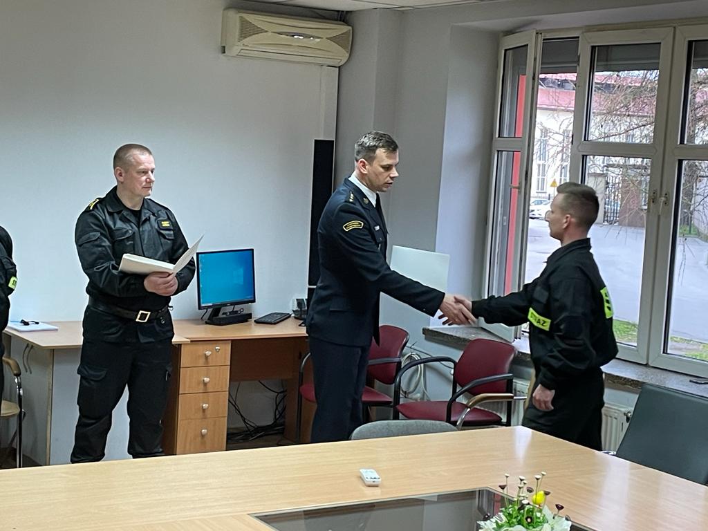 Na zakończenie egzaminu zaświadczenia potwierdzające uprawnienia z zakresu kwalifikowanej pierwszej pomocy i uzyskanie tytułu ratownika strażakom biorącym udział w egzaminie w imieniu małopolskiego komendanta wojewódzkiego PSP st. bryg. Piotra Filipka wręczył naczelnik Ośrodka Szkolenia Komendy Wojewódzkiej PSP w Krakowie st. kpt. Bogusław Szydło.