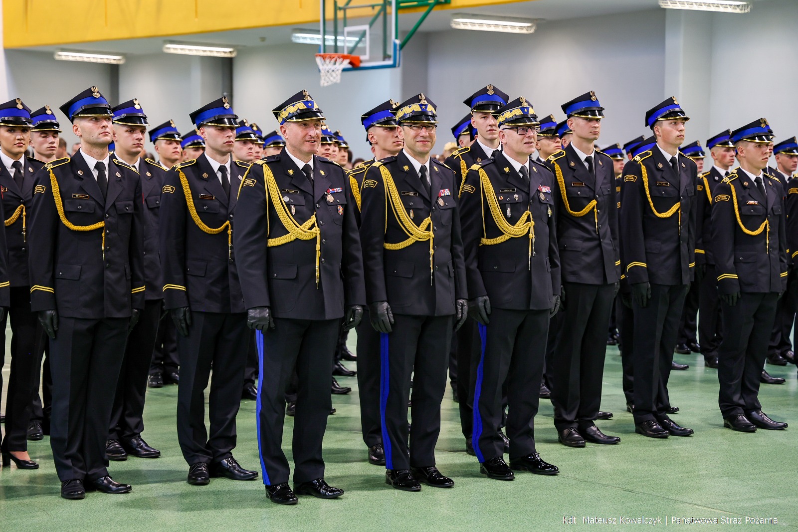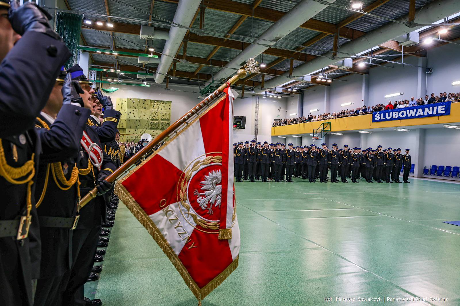 Choć jesienna aura tym razem nie sprzyjała, uroczystość przeniesiono do hali gimnastycznej, która wypełniła się blaskiem mundurów, dźwiękiem orkiestry i emocjami towarzyszącymi tej wyjątkowej chwili.