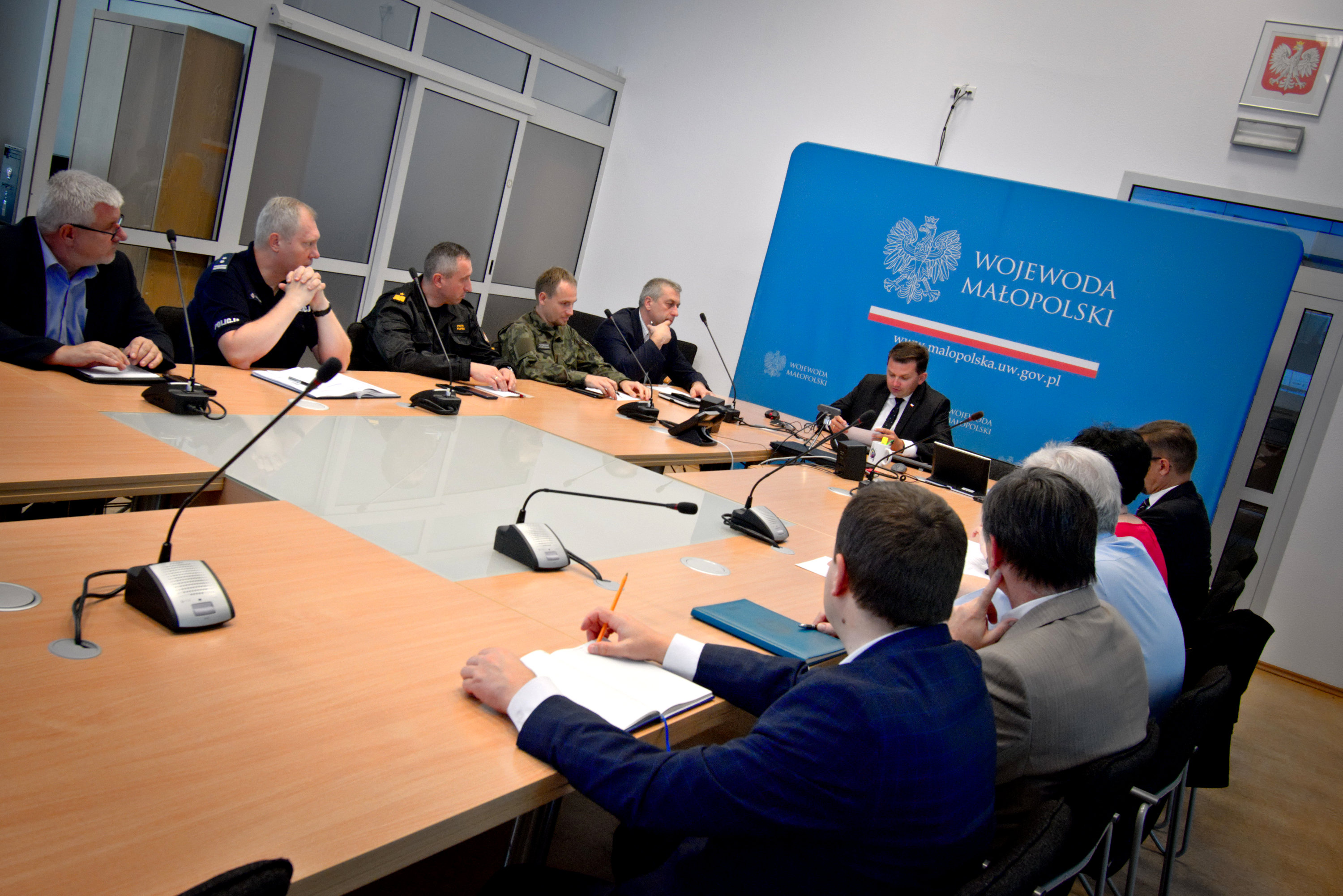 - Trzymamy rękę na pulsie, stąd posiedzenie Wojewódzkiego Zespołu Zarządzania Kryzysowego. Zawsze kluczowe jest laboratoryjne zbadanie próbek. W obu sytuacjach na terenie Małopolski nie ma potwierdzenia, by były to czynniki chemiczne. Postępujemy zgodnie z przewidzianymi procedurami. Polecam wszystkim służbom dokładny monitoring, ścisłą współpracę i bieżącą wymianę informacji - mówi wojewoda małopolski Łukasz Kmita.